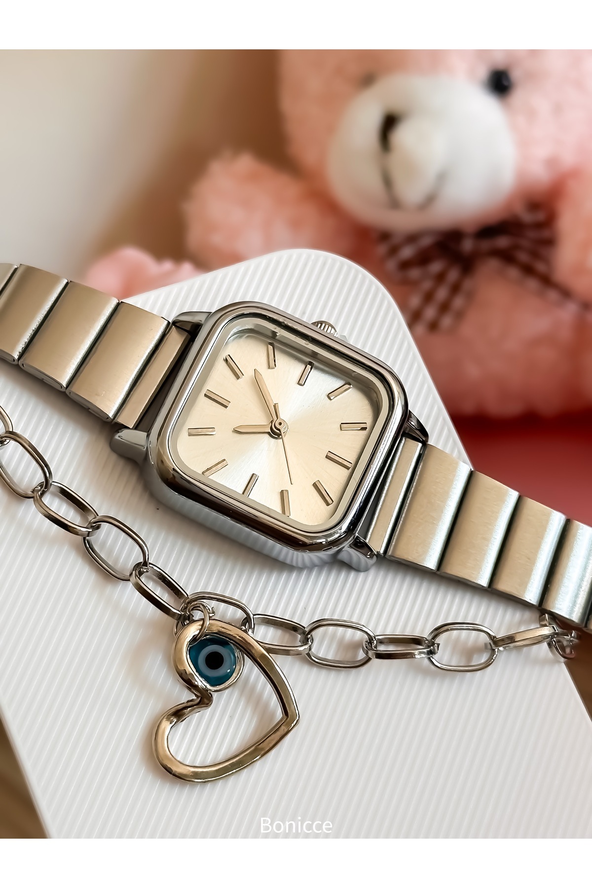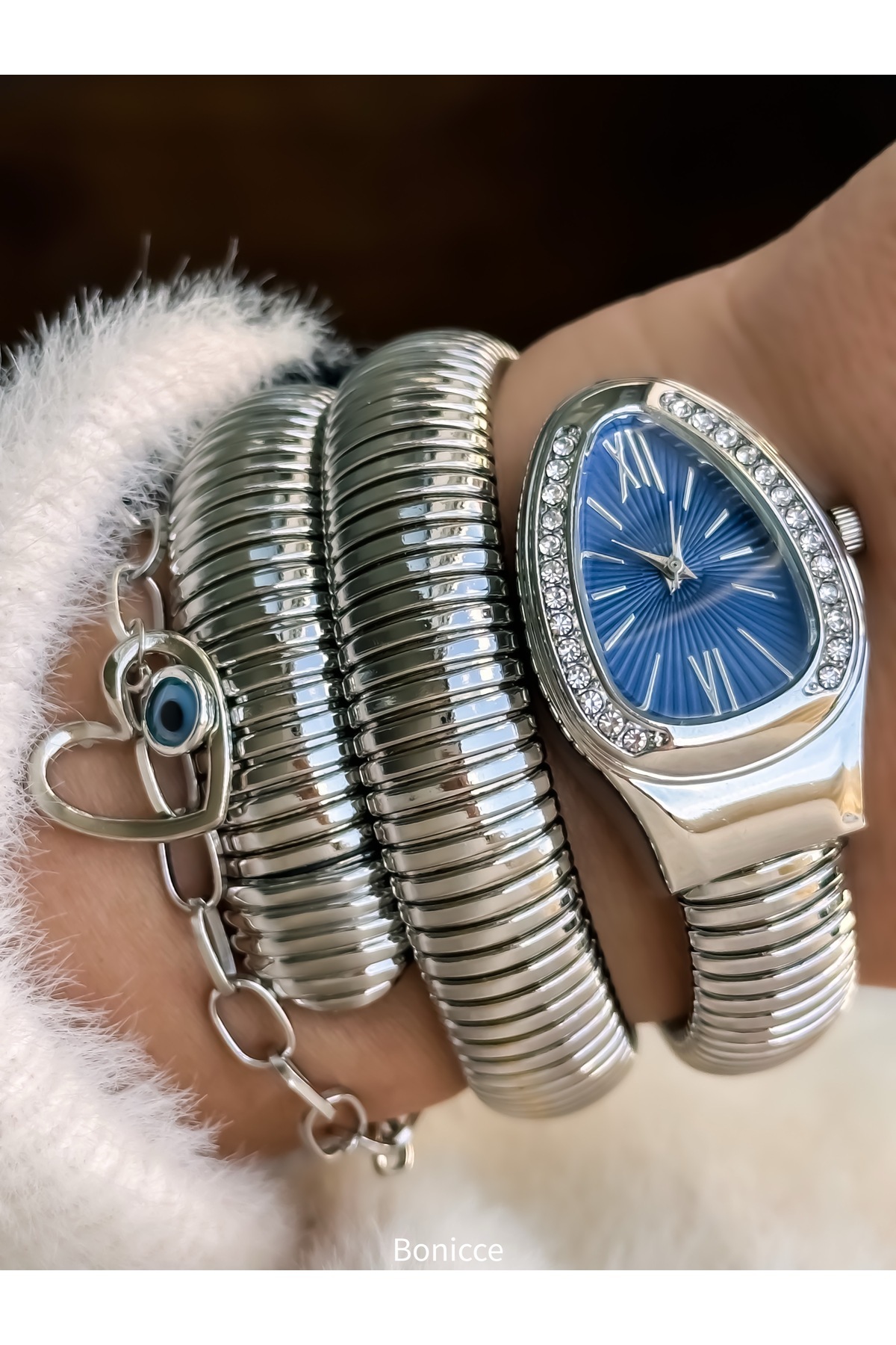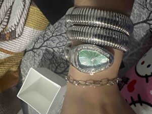 Özel Hediyelik Kutuda Gümüş Yeşil Taşlı Yılan Model Kadın Kol Saati Bileklik Nazar Boncuklu Bileklik Özel Hediyelik Kutuda Gümüş Yeşil Taşlı Yılan Model Kadın Kol Saati Bileklik Nazar Boncuklu Bileklik BNCCHPRS تک سایز