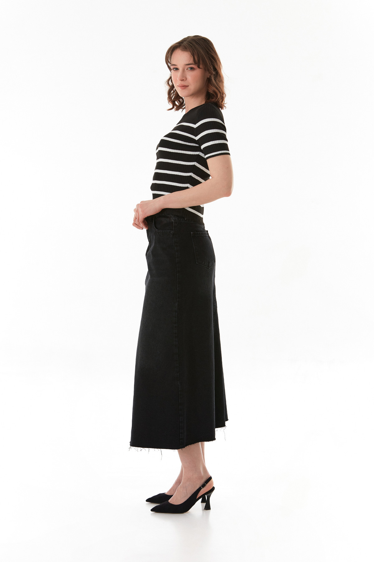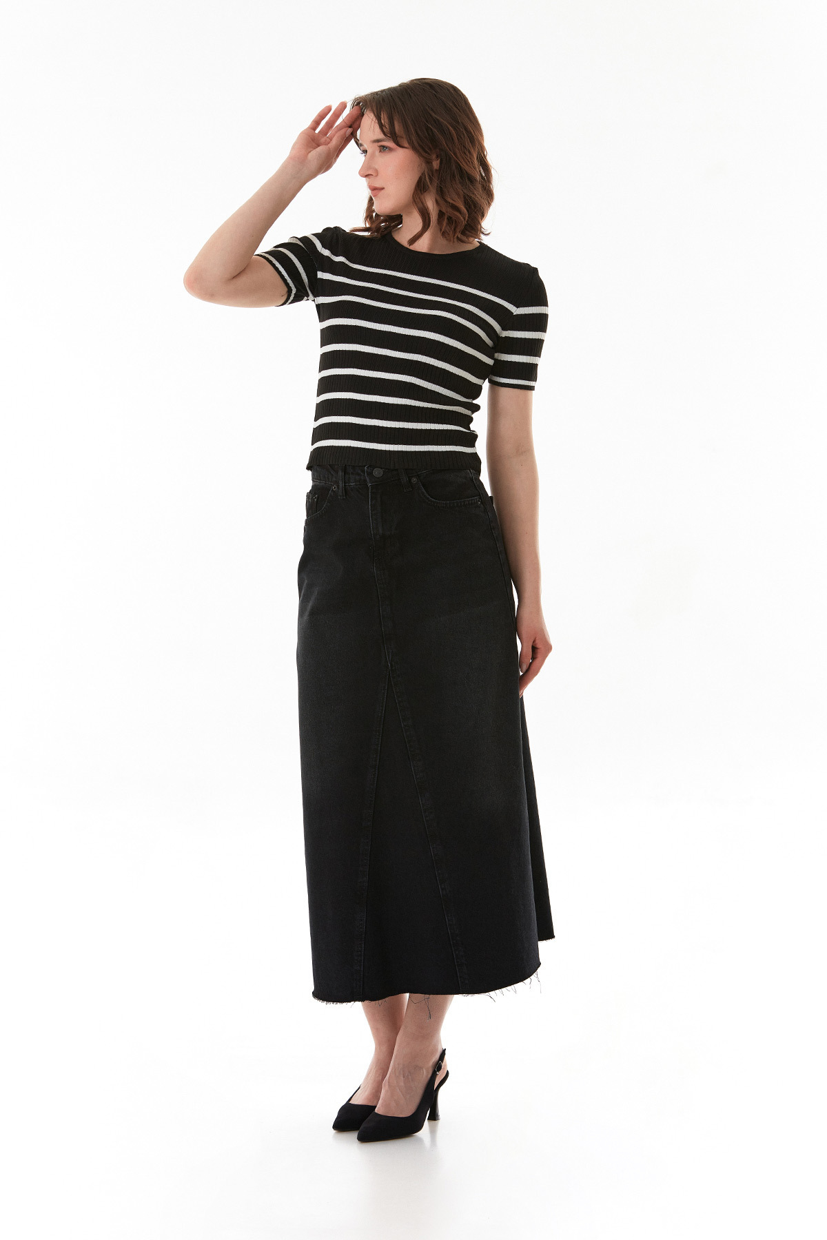 Çizgili Fitilli Bisiklet Yaka Triko Bluz Çizgili Fitilli Bisiklet Yaka Triko Bluz 25YGB7726129778 S/M