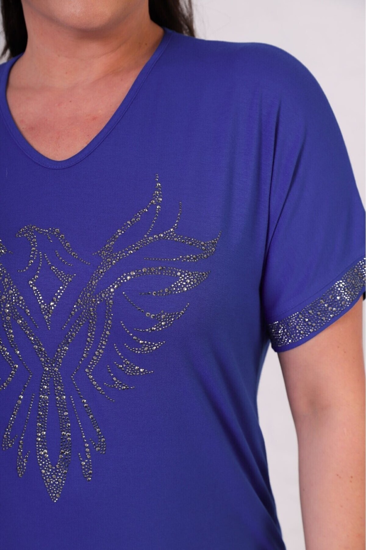 Kadın Büyük Beden Ön ve Kol Kısmı Taş Baskılı Kısa Kollu T-Shirt Kadın Büyük Beden Ön ve Kol Kısmı Taş Baskılı Kısa Kollu T-Shirt TARZ-1017 42