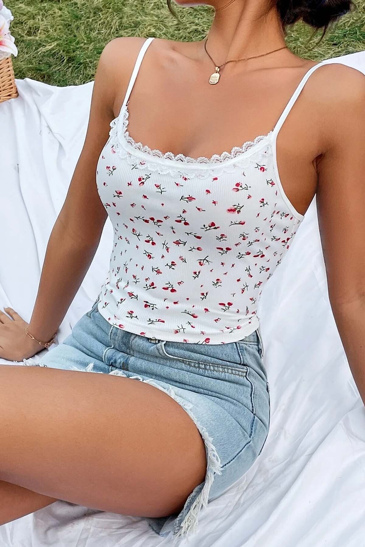 Çiçek Desenli Askılı Atlet Bluz Crop Top Çiçek Desenli Askılı Atlet Bluz Crop Top MS3906 2XL