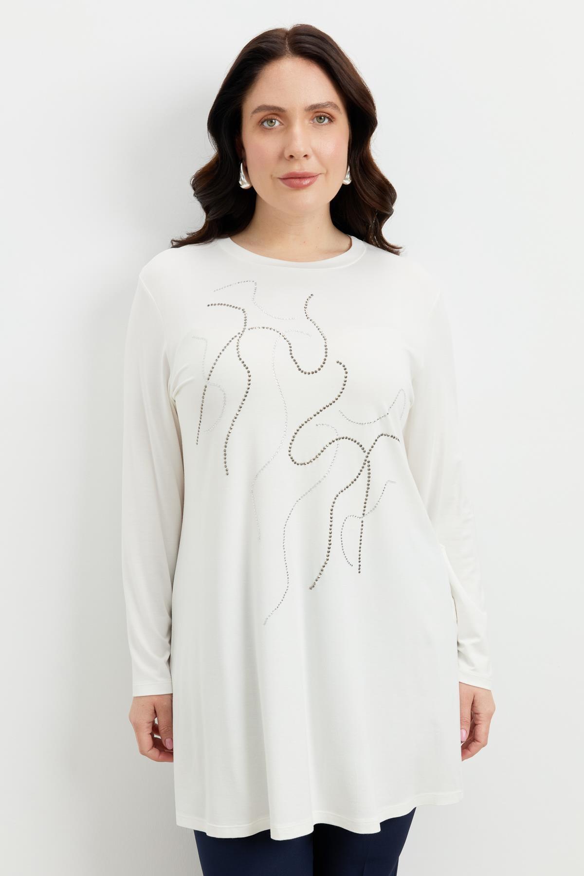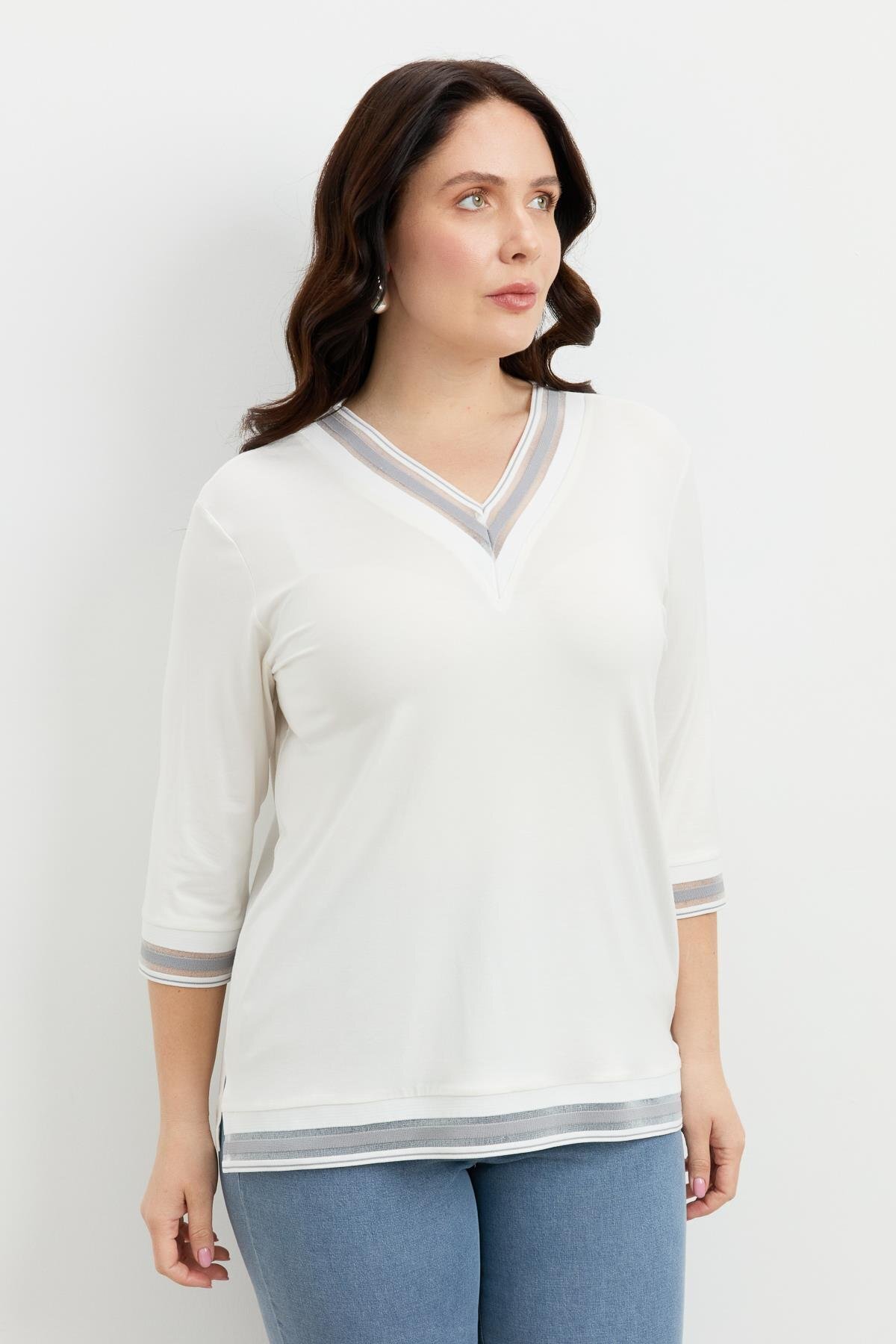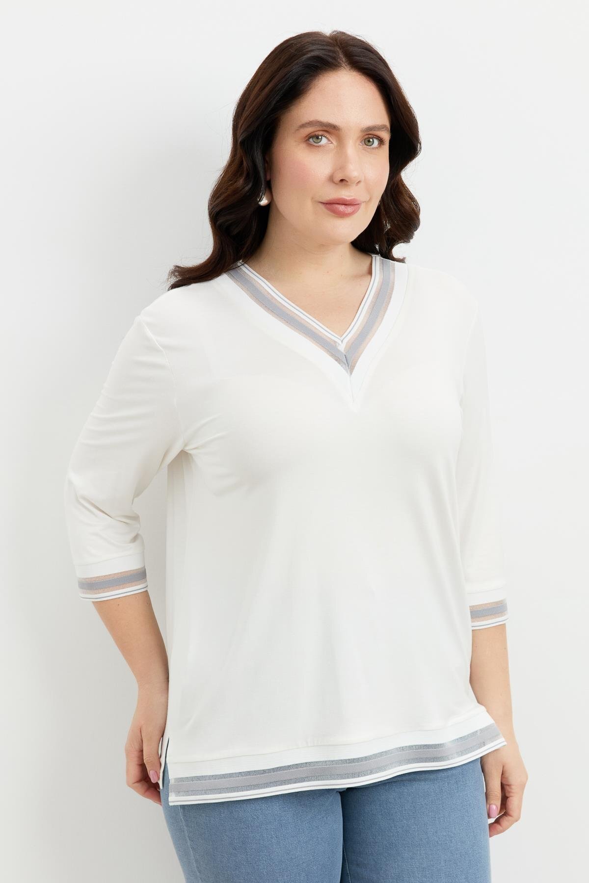 Büyük Beden Tül Şerit Detaylı Bluz-GRİ Büyük Beden Tül Şerit Detaylı Bluz-GRİ 5SBB81B1126 48