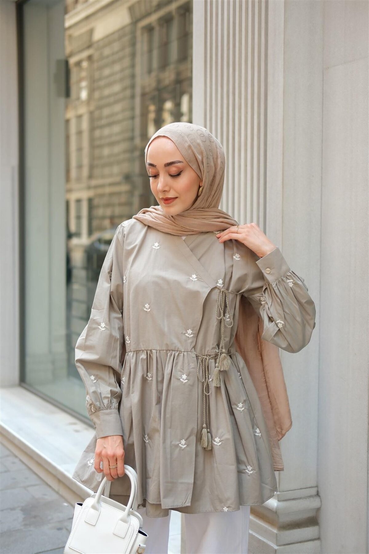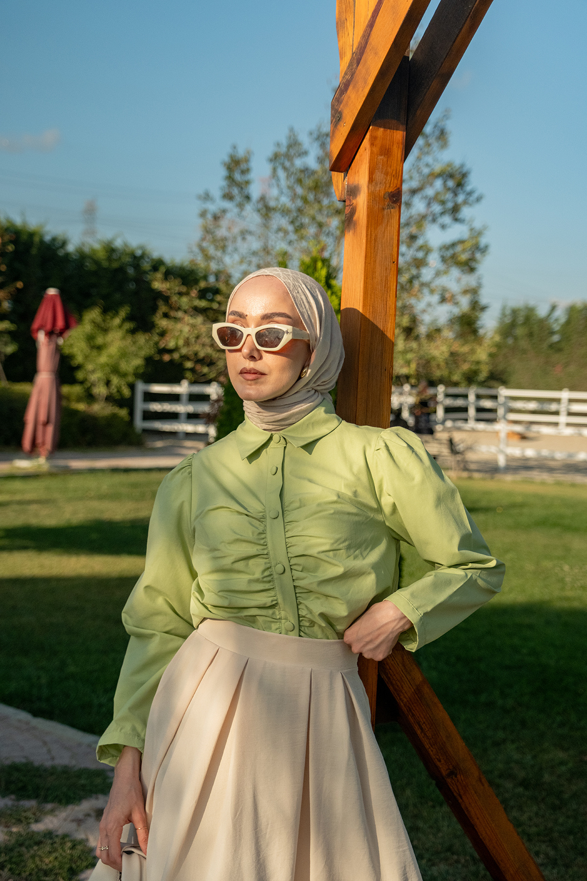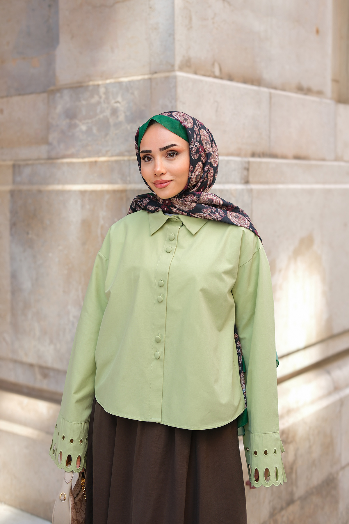 Kadın Kolu Nakışlı Gömlek Fıstık Yeşil Kadın Kolu Nakışlı Gömlek Fıstık Yeşil 182-0191 S/M
