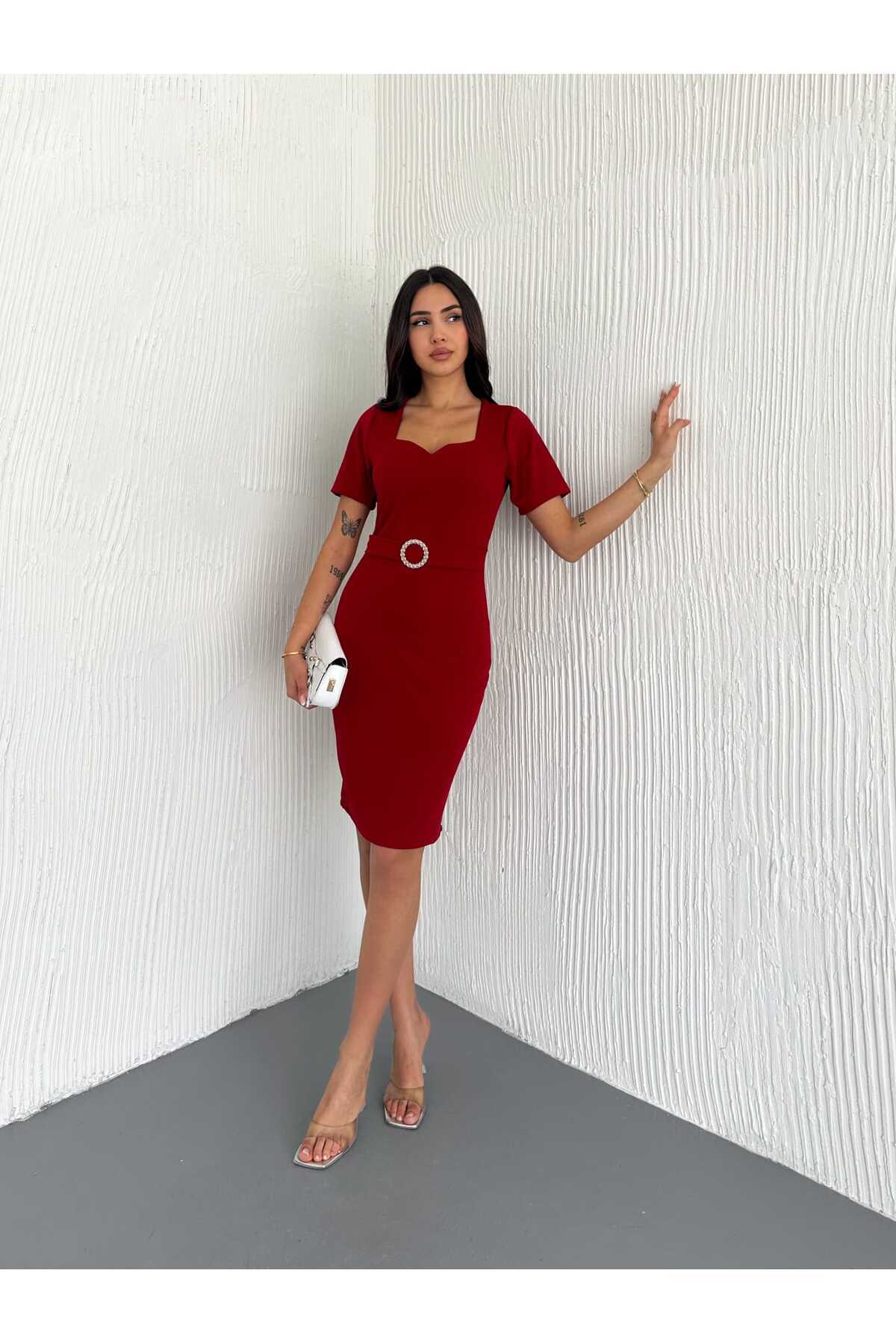 Kruvaze U Yaka Toka Detaylı Elbise Kruvaze U Yaka Toka Detaylı Elbise 1196
