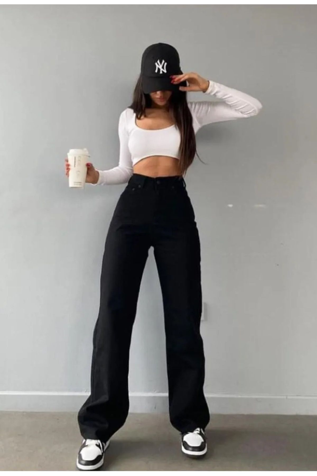 Duryn Nisa Siyah Salaş Palazzo Rahat Kesim Kadın Jeans Pantolon Yeni Sezon Duryn Nisa Siyah Salaş Palazzo Rahat Kesim Kadın Jeans Pantolon Yeni Sezon HB-851930 44