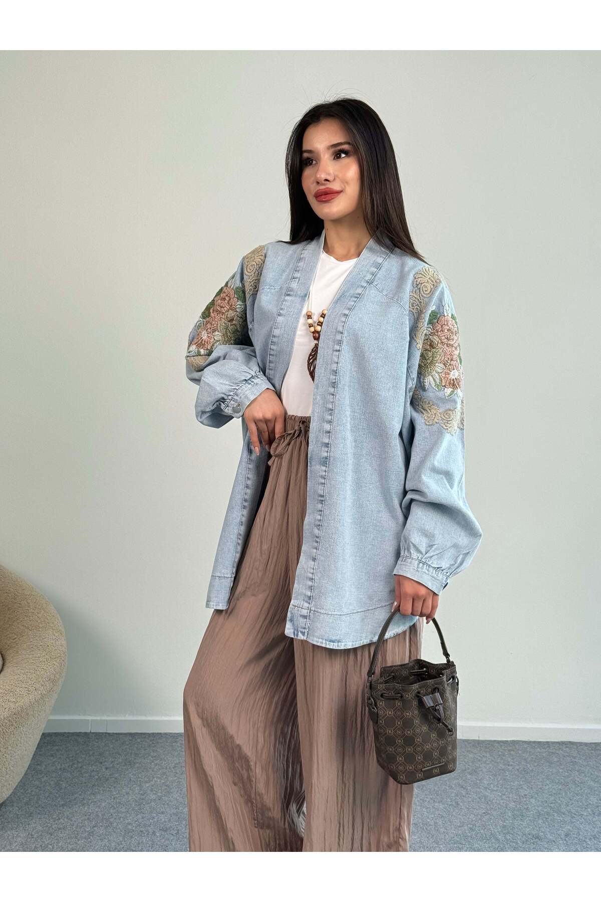 Çiçek detaylı tasarım kot ceket Çiçek detaylı tasarım kot ceket jajjwjdjdj M/L