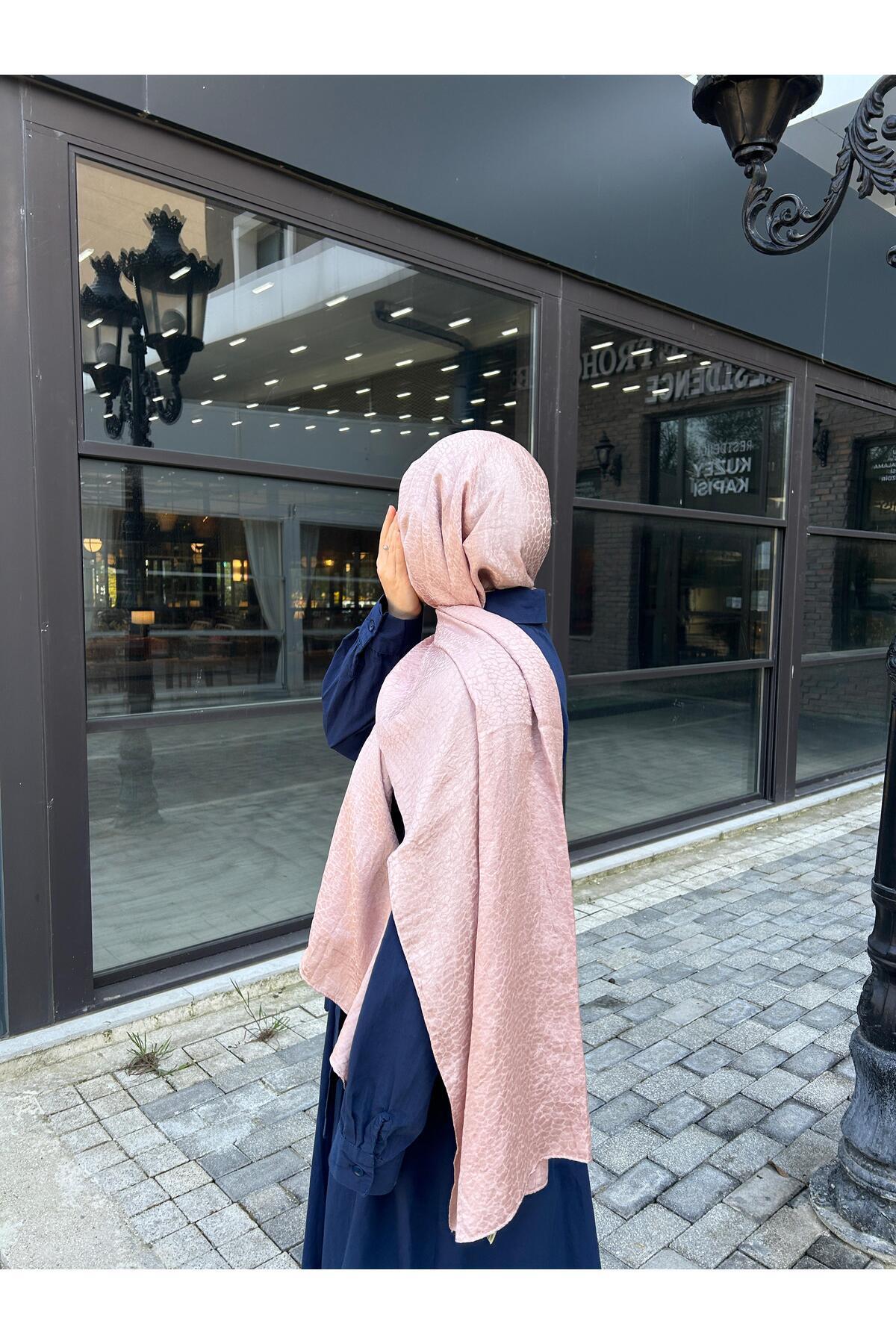 Taş Desen Pamuklu Jakar Şal-Pudra Taş Desen Pamuklu Jakar Şal-Pudra 00143 75 x 185