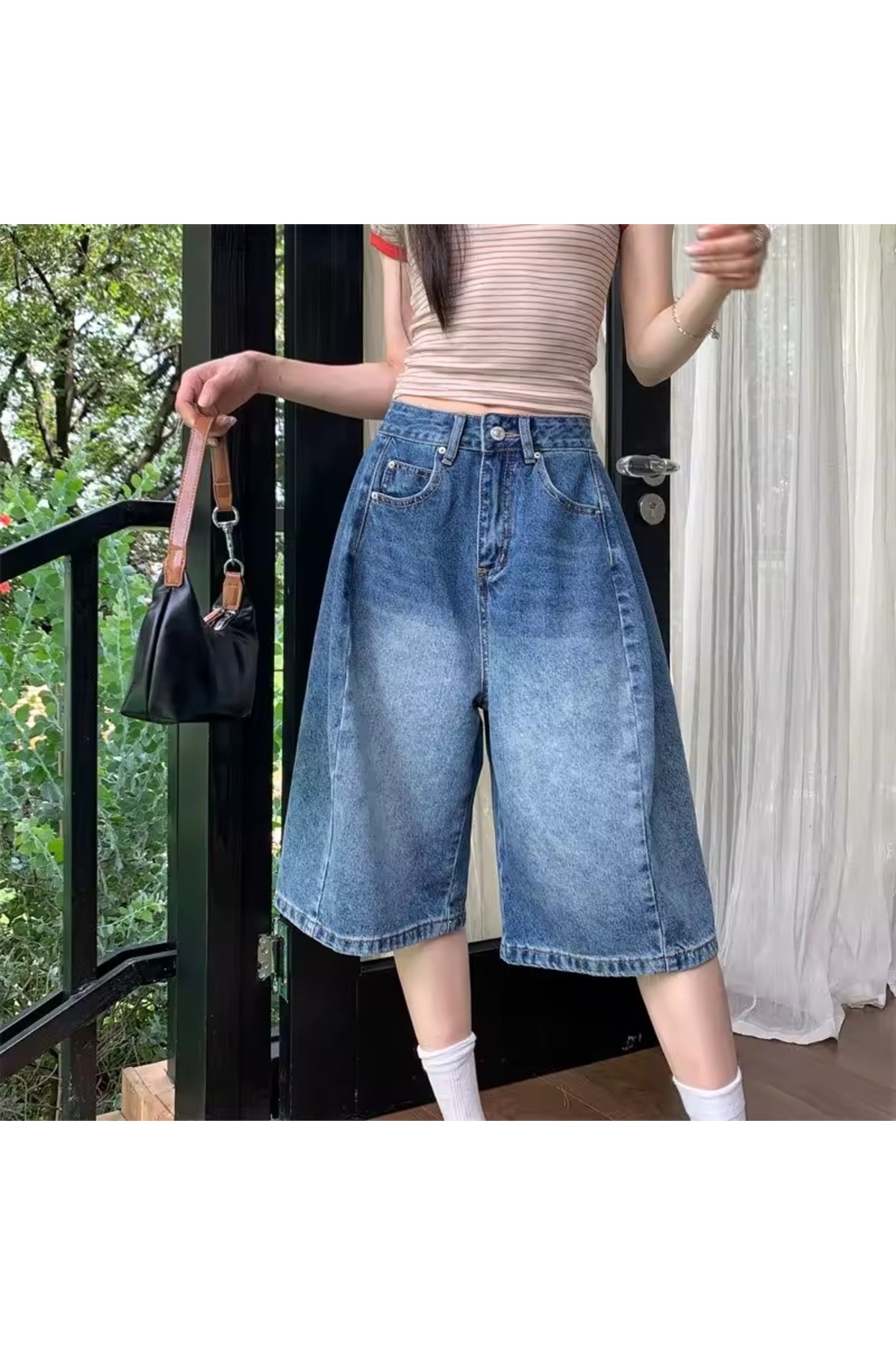 Kadın Yüksek Bel Soluk Efektli Vintage Bol Kesim Geniş Paça Baggy Denim Bermuda Şort Kadın Yüksek Bel Soluk Efektli Vintage Bol Kesim Geniş Paça Baggy Denim Bermuda Şort 1600 44