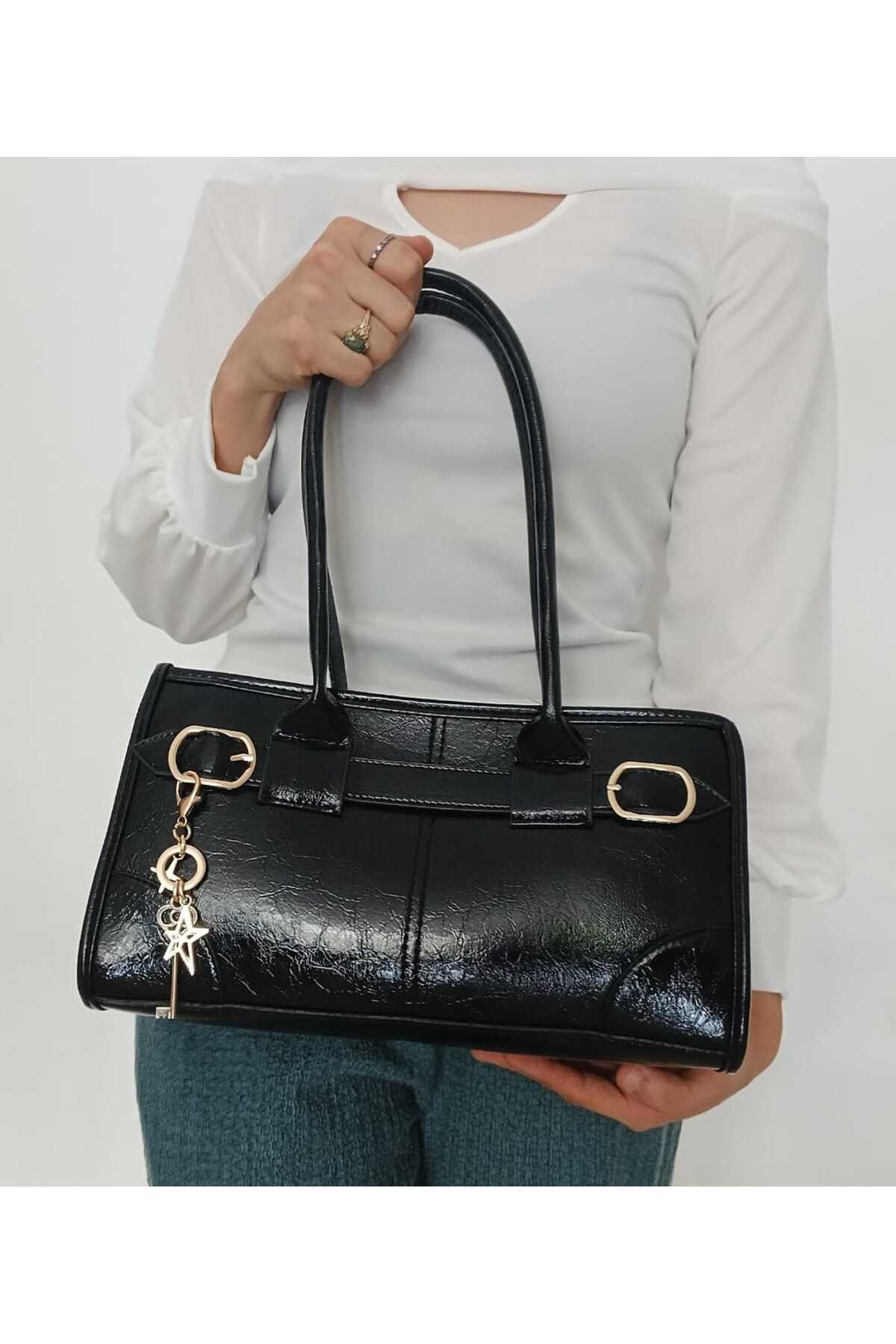 Altın Detaylı Suni Deri Kadın Baget Çanta Altın Detaylı Suni Deri Kadın Baget Çanta STAR MODEL تک سایز
