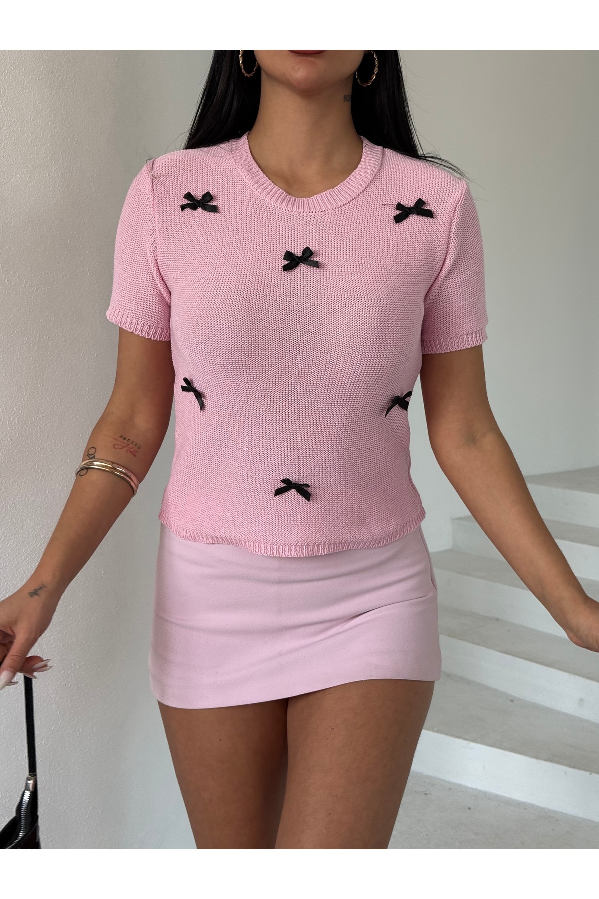 Kadın Bisiklet Yaka Kurdela Detaylı T-şhirt Kadın Bisiklet Yaka Kurdela Detaylı T-şhirt 25Y003653 Standart