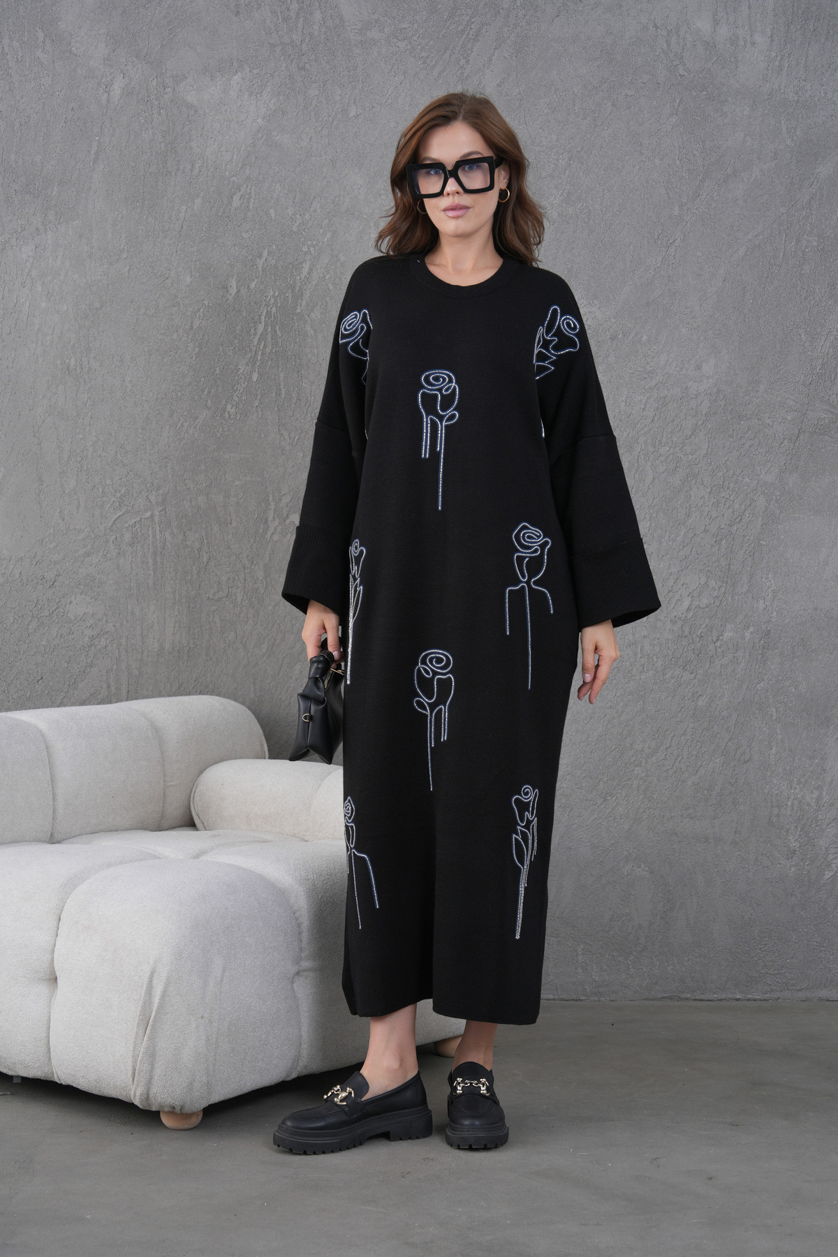 Kadın Önü Nakışlı Çiçek Ve Taş Süslemeli Geniş Kalıp Uzun Kot Elbise Kadın Önü Nakışlı Çiçek Ve Taş Süslemeli Geniş Kalıp Uzun Kot Elbise 475 XL