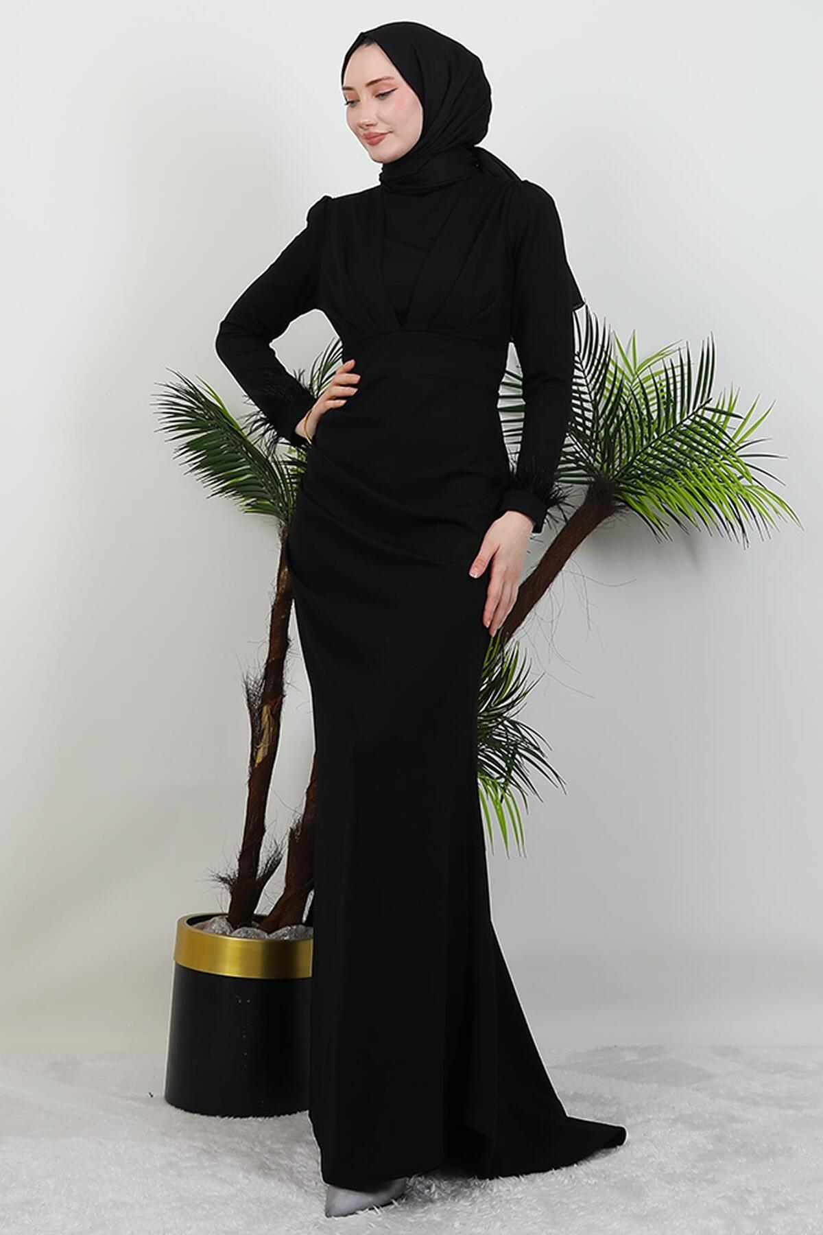 Kolu Tüylü Pile Detay Elbise Siyah Kolu Tüylü Pile Detay Elbise Siyah 4249520 46