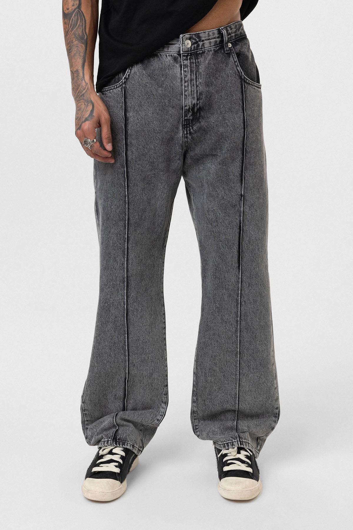 Dikiş Detaylı Relaxed Fit Jean Gri Dikiş Detaylı Relaxed Fit Jean Gri V100-07 36