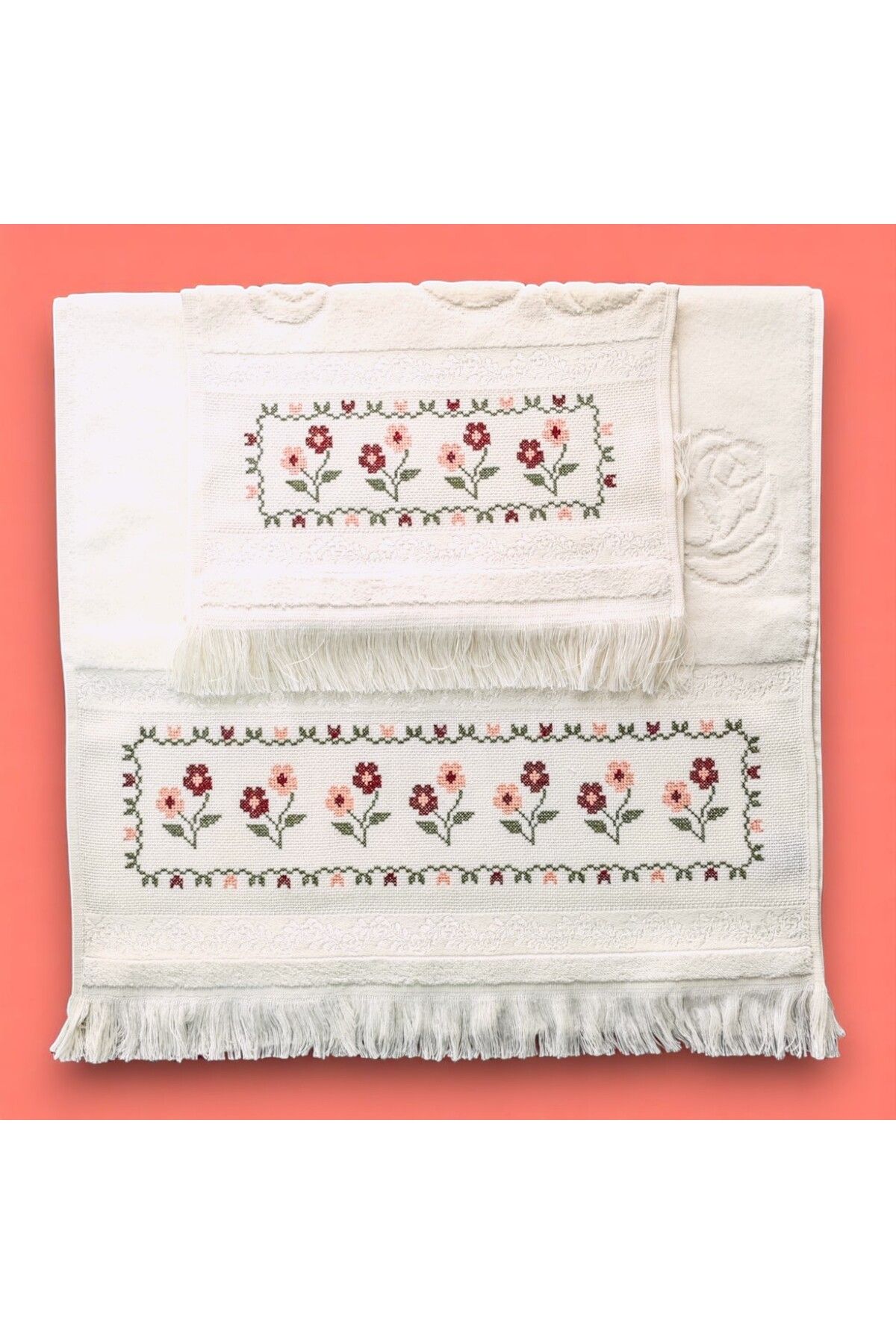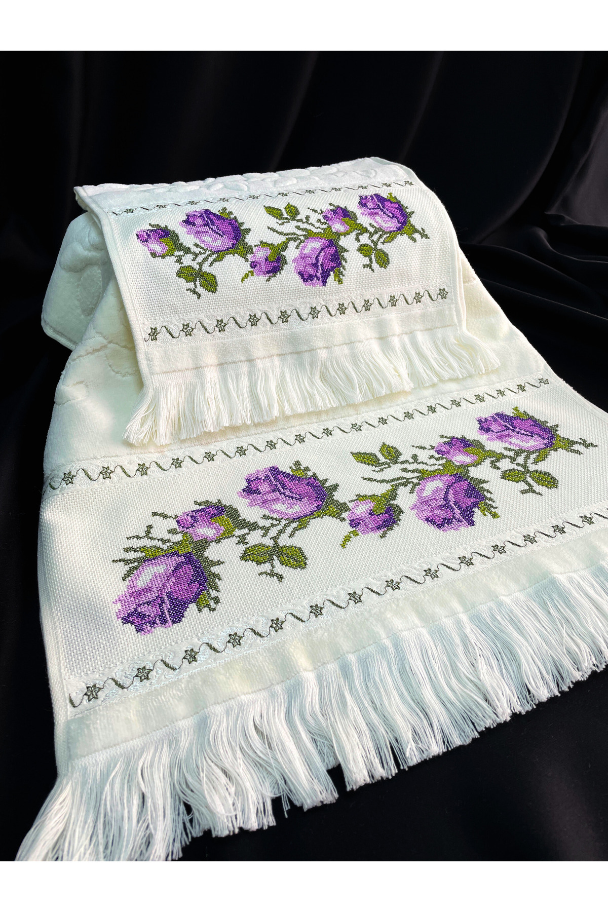 Kanaviçe Nakışlı Güllü Kadife El Yüz Havlusu Seti-2'li - 50x90 Cm- Beyaz Kanaviçe Nakışlı Güllü Kadife El Yüz Havlusu Seti-2'li - 50x90 Cm- Beyaz 51-0519 تک سایز