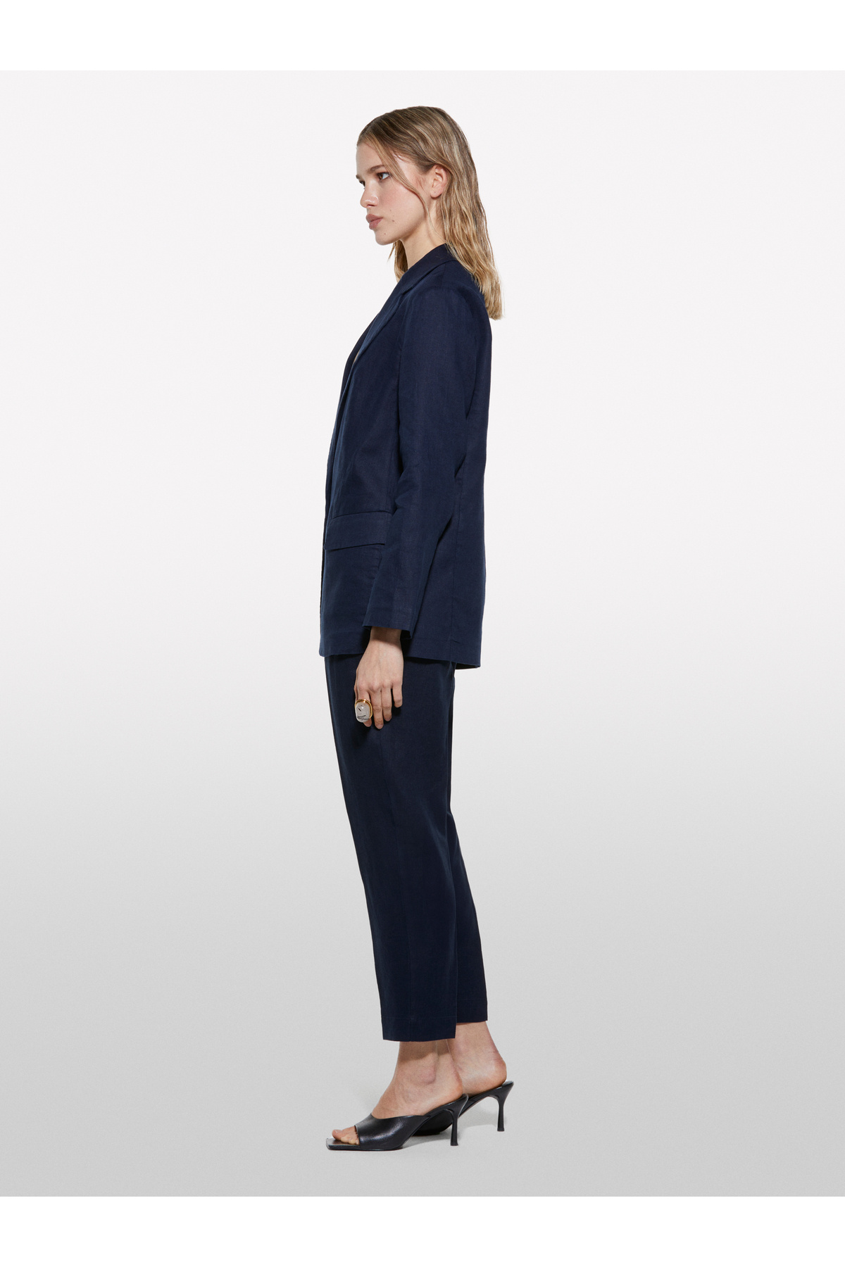 Kadın Koyu Lacivert %100 Keten Tek Düğmeli Blazer Ceket Kadın Koyu Lacivert %100 Keten Tek Düğmeli Blazer Ceket 325P2AGHLW019 46