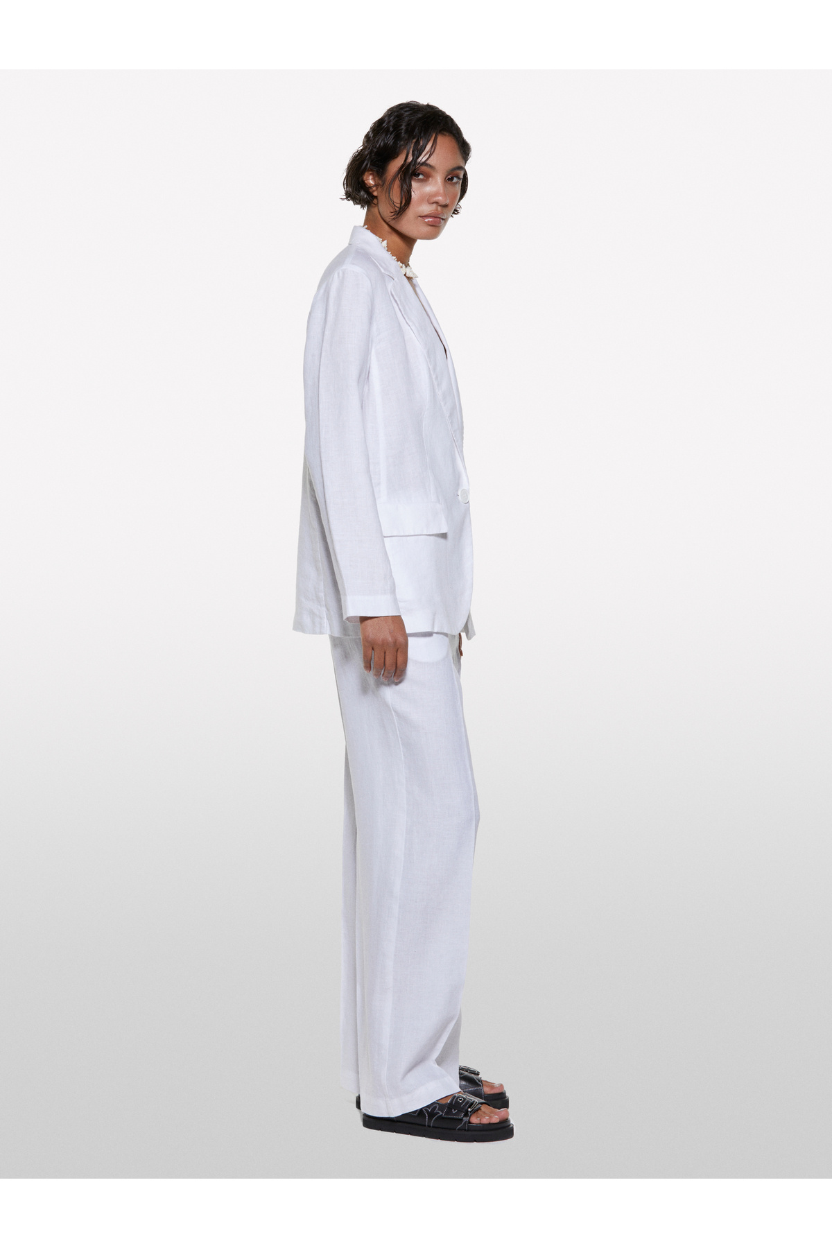 Kadın Beyaz %100 Keten Beli Lastikli Önü Pileli Geniş Paça Pantolon Kadın Beyaz %100 Keten Beli Lastikli Önü Pileli Geniş Paça Pantolon 325P4AGHLF03U 46
