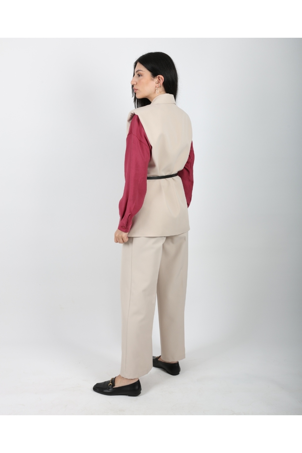 Kadın Bej Vatkalı Kemerli Oversize Yelek Kadın Bej Vatkalı Kemerli Oversize Yelek YLK02 L