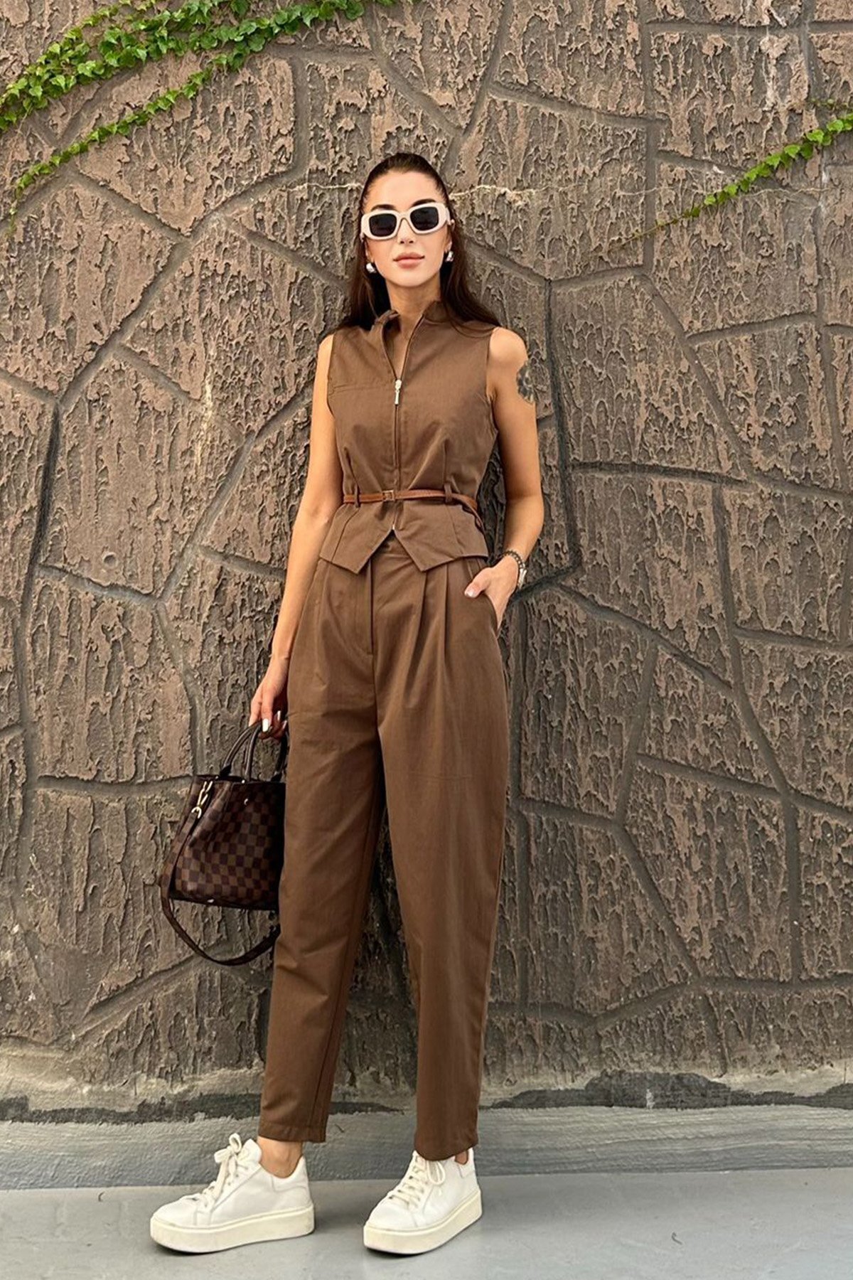 Kadın Fermuarlı Kemerli Yelek Pantolon Takım Kadın Fermuarlı Kemerli Yelek Pantolon Takım TKM-25Y-1004 L