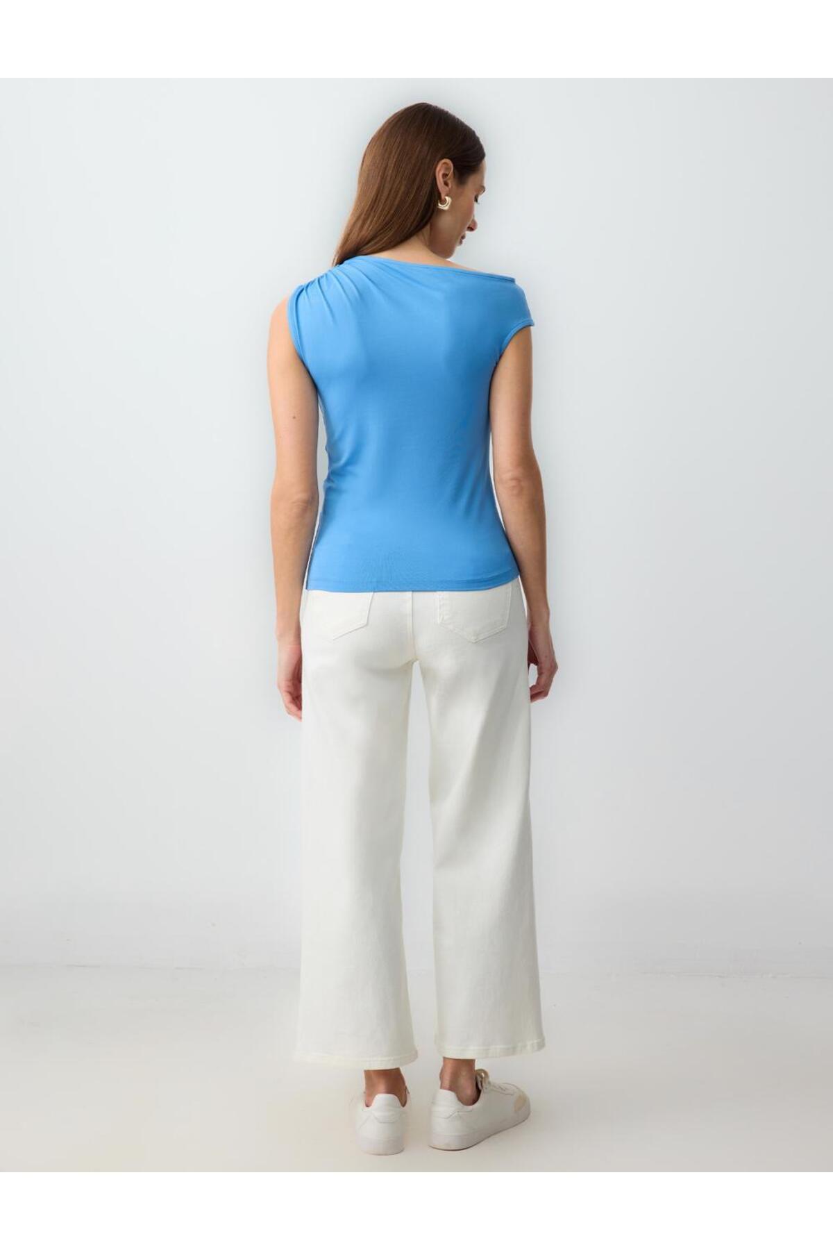 Mavi Düz Kesim Kayık Yaka Tek Omuzlu Örme Bluz Mavi Düz Kesim Kayık Yaka Tek Omuzlu Örme Bluz 5SW034988 XL