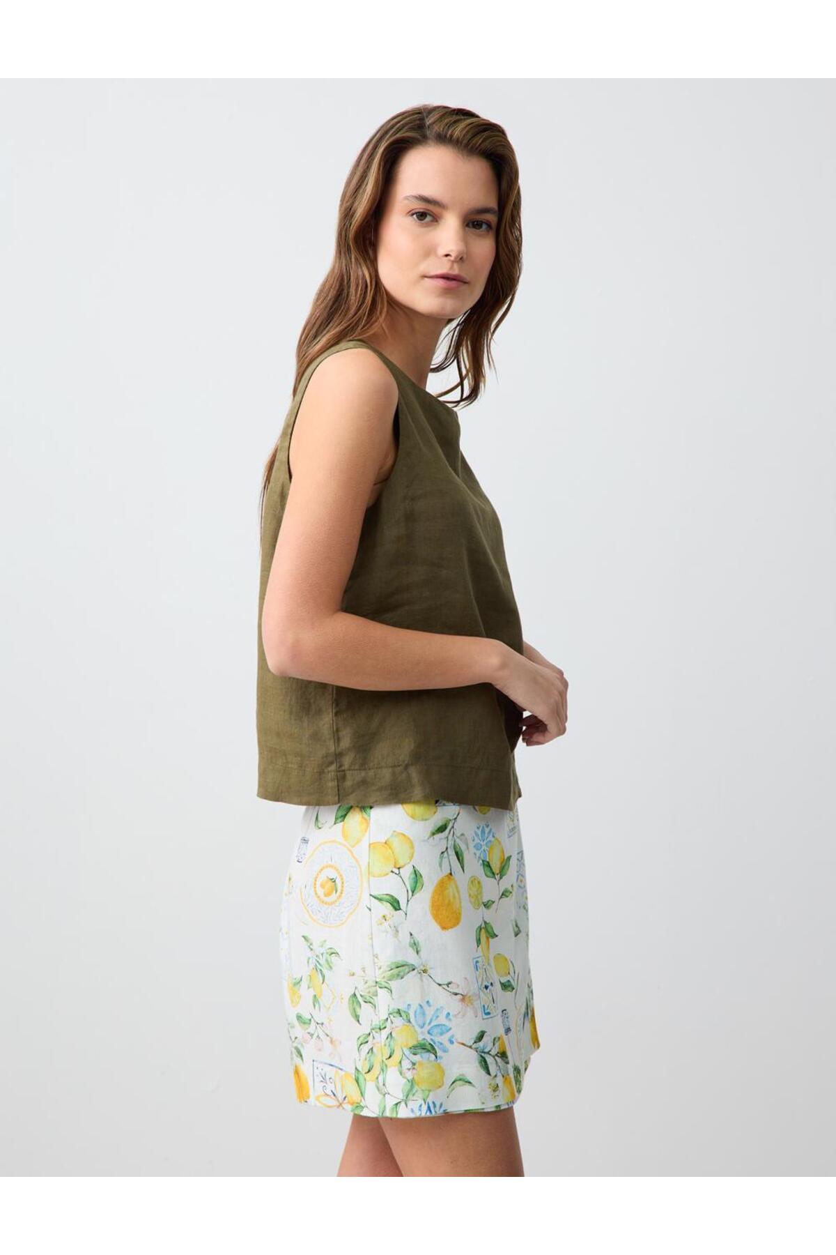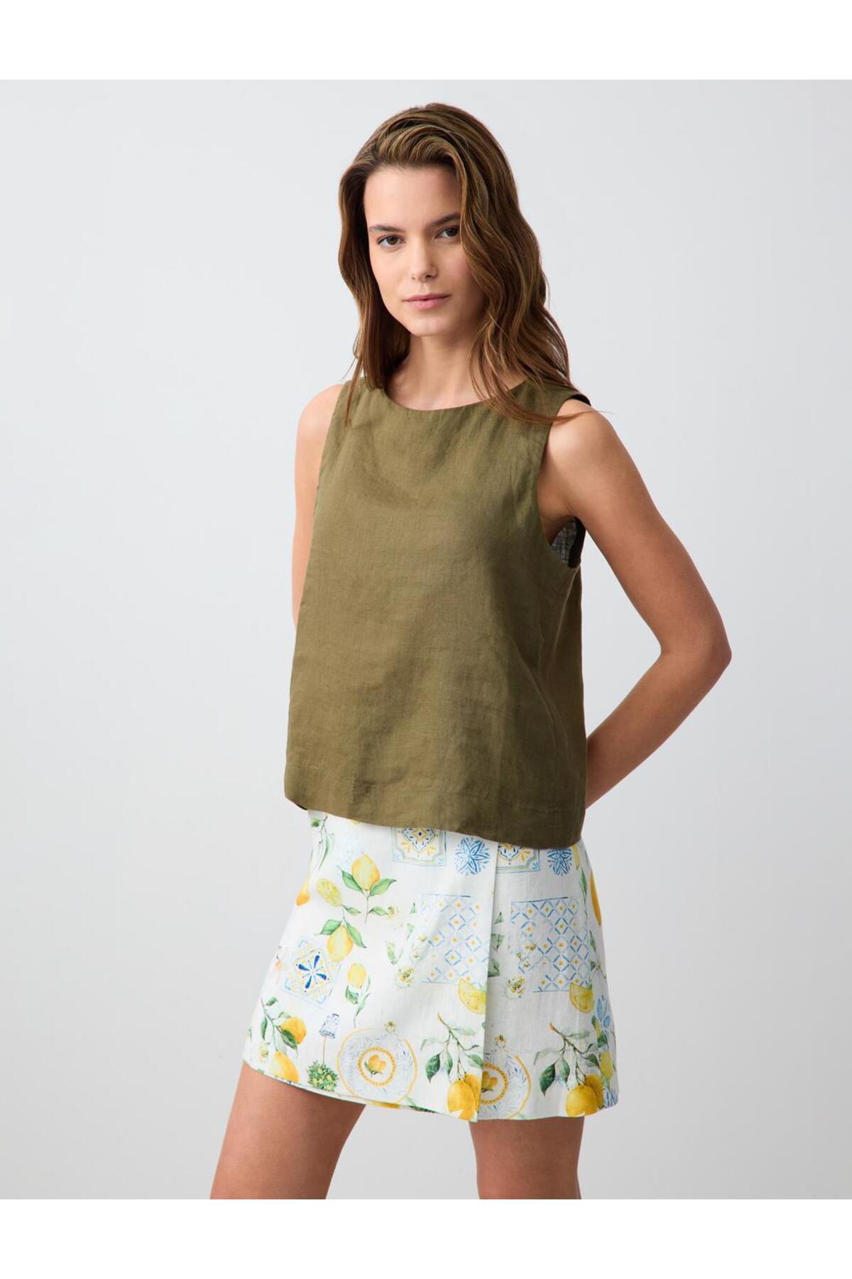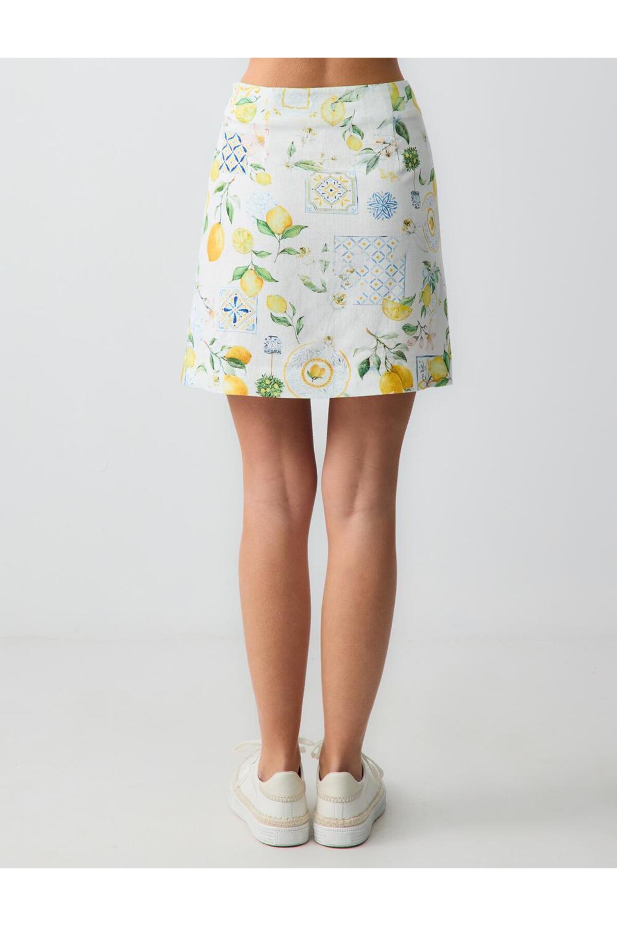 Sarı Normal Bel Düz Kesim Desenli Keten Mini Etek Sarı Normal Bel Düz Kesim Desenli Keten Mini Etek 5SW073235 XL