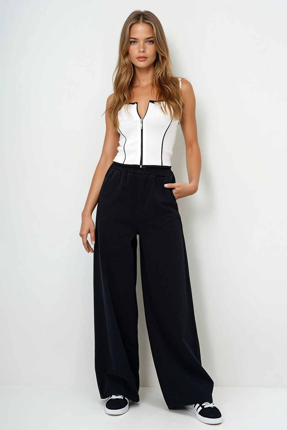 Kadın Siyah Çift Cepli Gabardin Palazzo Pantolon Prmx13983 Kadın Siyah Çift Cepli Gabardin Palazzo Pantolon Prmx13983 PRMX13983 42