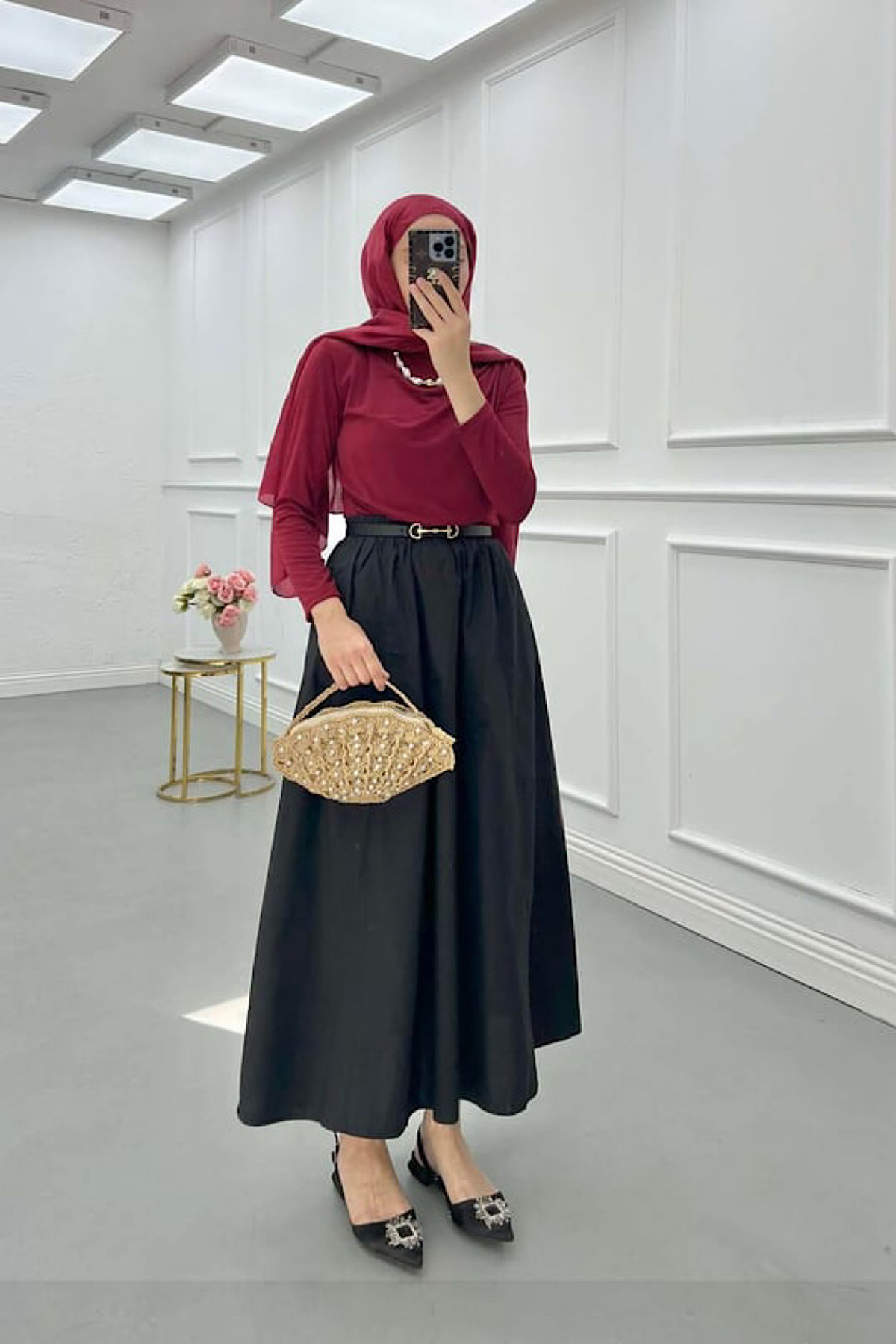 Kemer Detaylı İçi Astarlı Kloş Etek Kemer Detaylı İçi Astarlı Kloş Etek Kloş-Etek XL