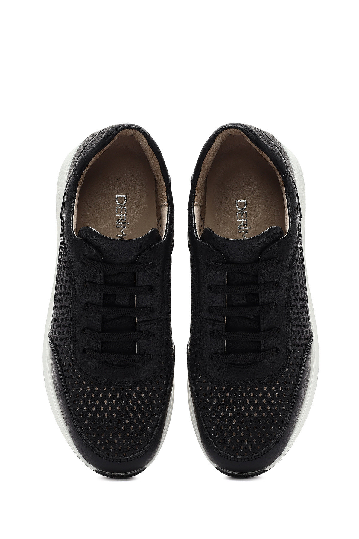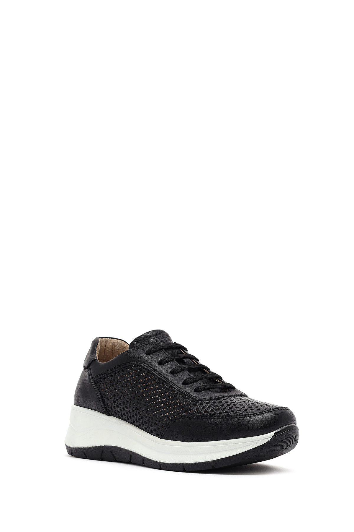 Kadın Siyah Bağcıklı Kalın Tabanlı Deri Sneaker 25SFD501718 Kadın Siyah Bağcıklı Kalın Tabanlı Deri Sneaker 25SFD501718 40