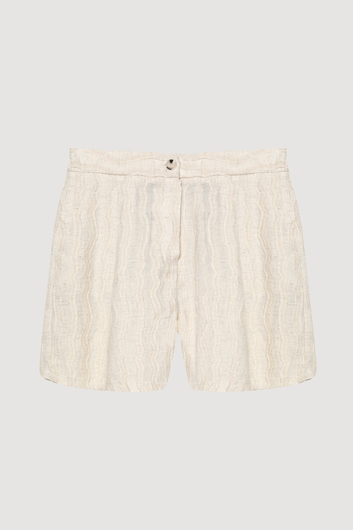Cep Detaylı Dokulu Keten Mini Şort Naturel Cep Detaylı Dokulu Keten Mini Şort Naturel 25YSRT00374 L