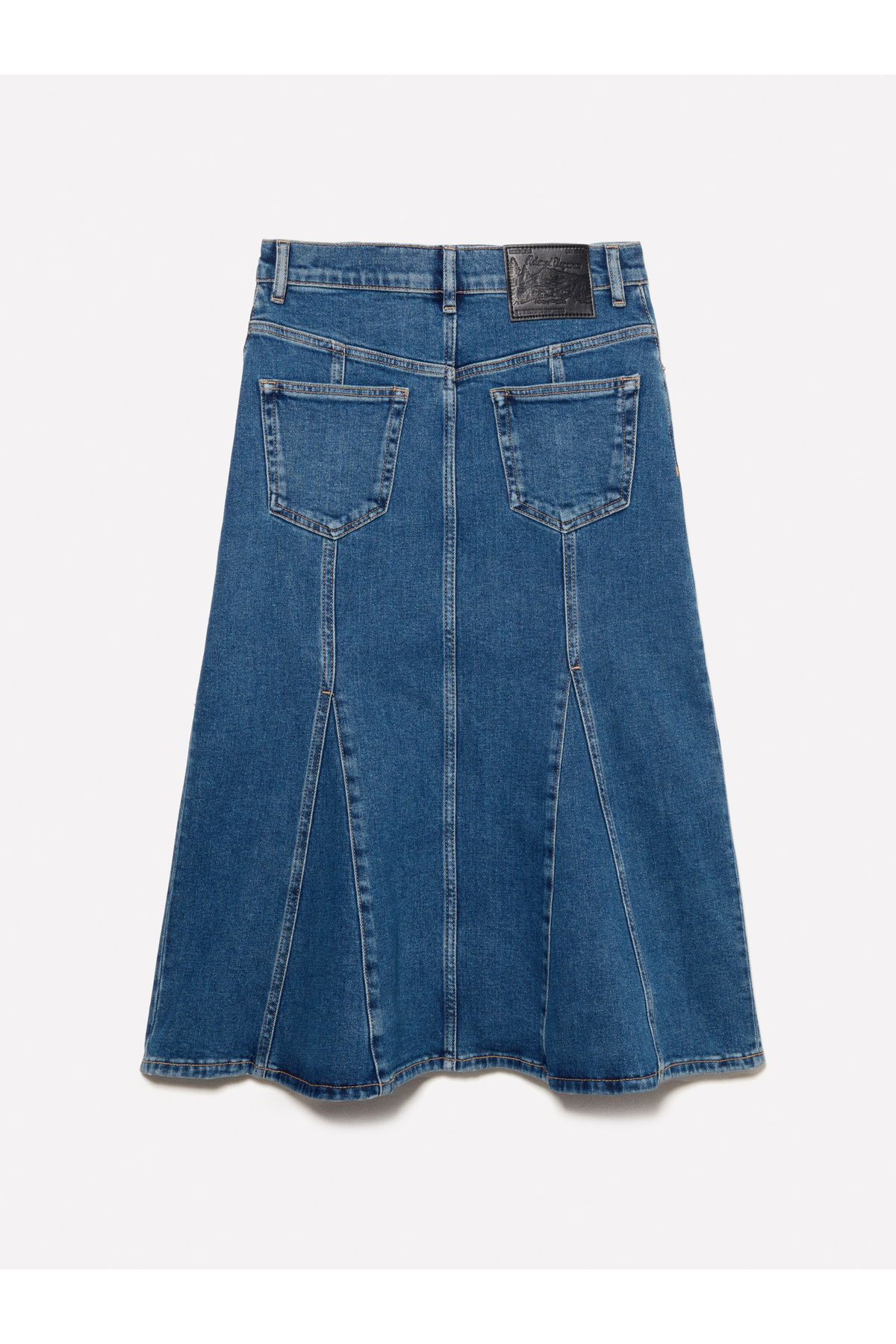 Kadın Koyu Denim Pamuklu Düğmeli Kloş Yüksek Bel Midi Denim Etek Kadın Koyu Denim Pamuklu Düğmeli Kloş Yüksek Bel Midi Denim Etek 325P41GTL002N 42