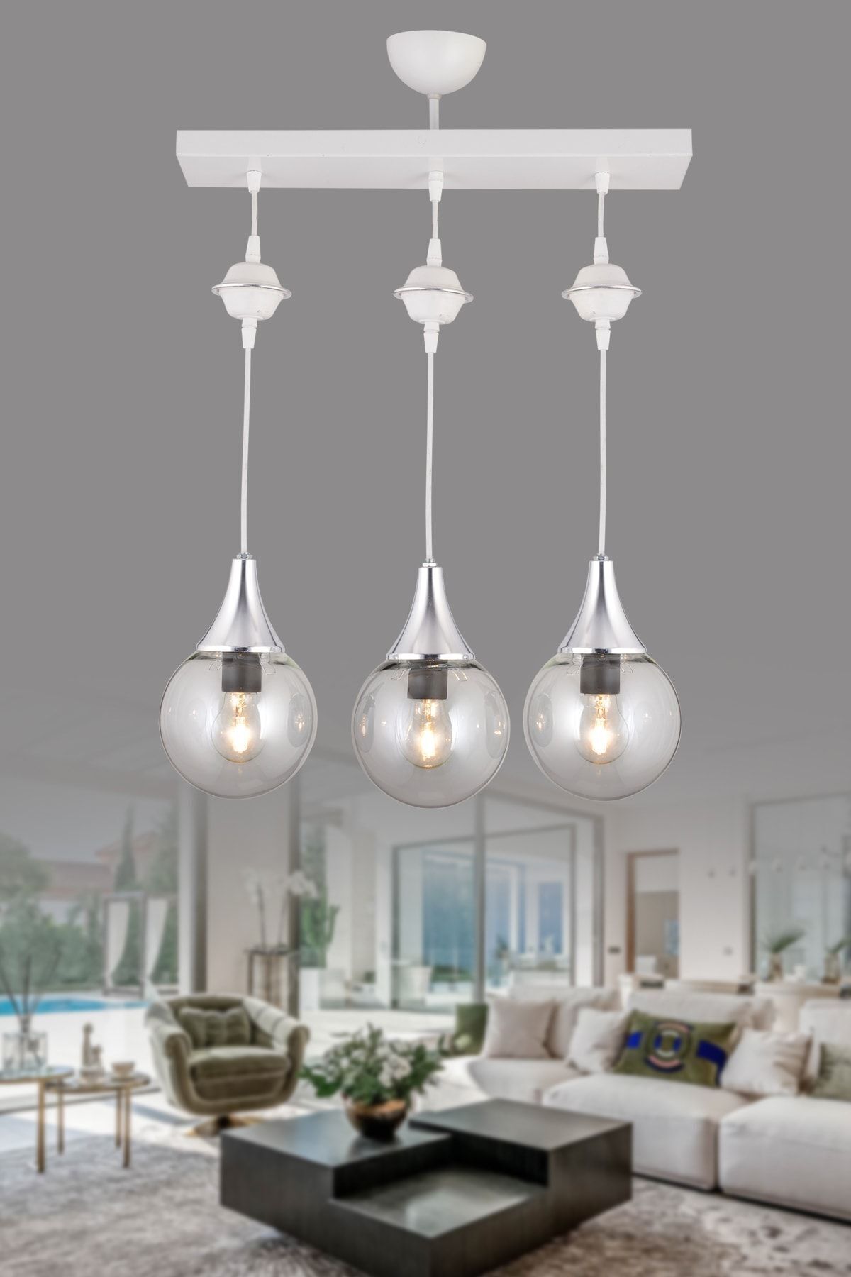 Siena 3 lü Beyaz Camlı Salon Oturma Odası Modern Sarkıt Avize - (Krom Kaplama) Siena 3 lü Beyaz Camlı Salon Oturma Odası Modern Sarkıt Avize - (Krom Kaplama) KL-101-3 تک سایز