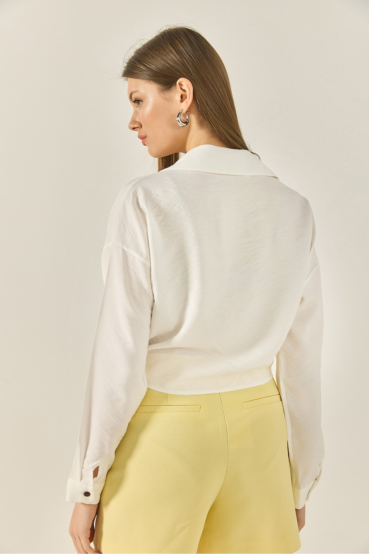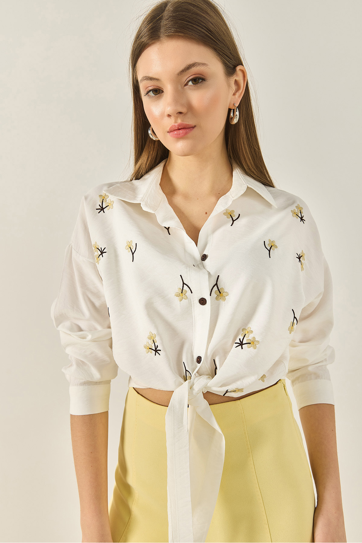 Kadın Papatya Nakışlı Bağlama Detaylı Kısa Viskon Gömlek MG6282 60283243 Kadın Papatya Nakışlı Bağlama Detaylı Kısa Viskon Gömlek MG6282 60283243 XL