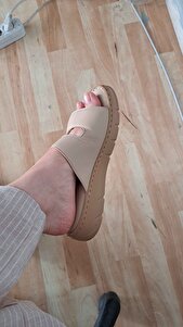Kadın Bej Çift Bantlı Deri Comfort Terlik 25SFD341218 Kadın Bej Çift Bantlı Deri Comfort Terlik 25SFD341218 41