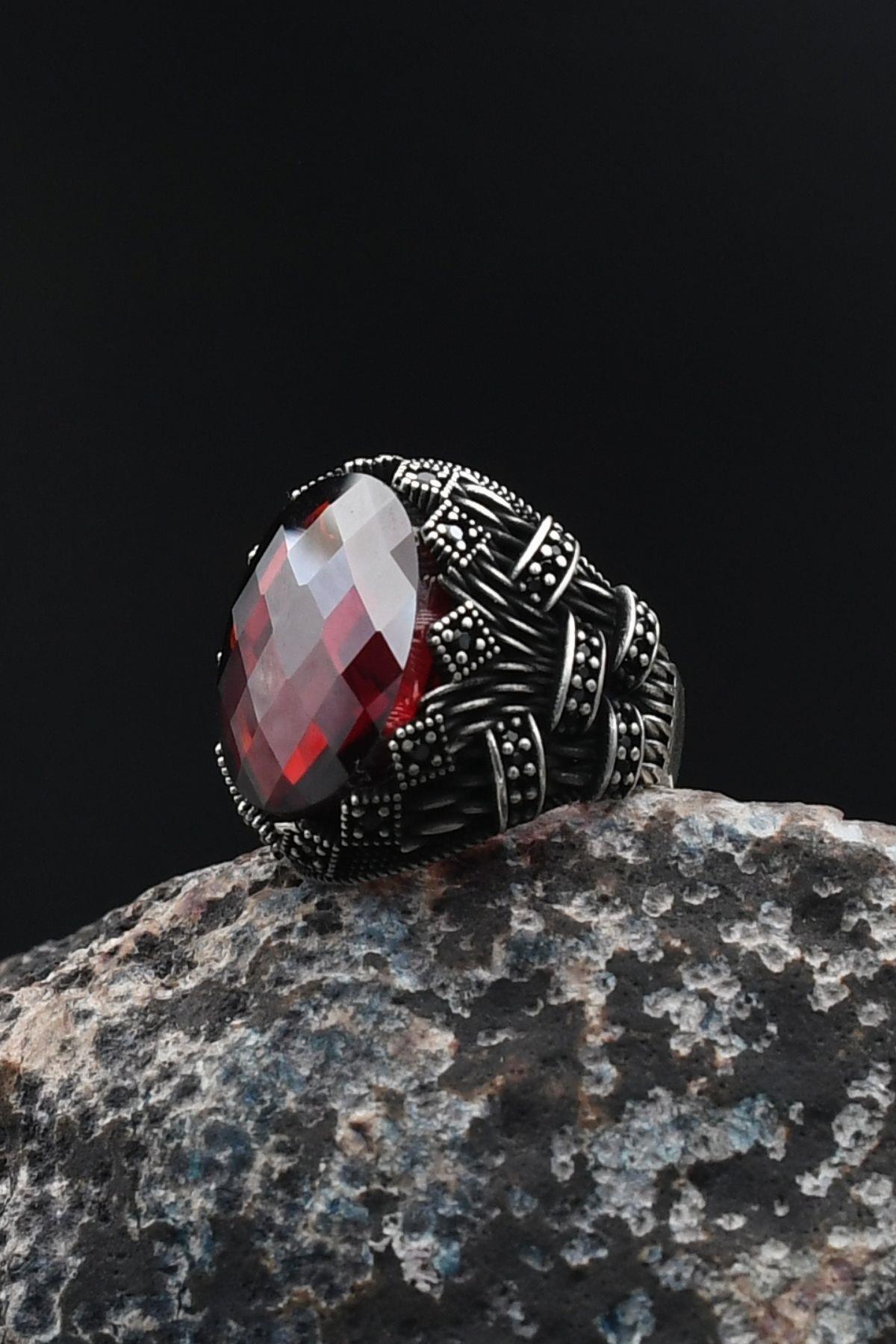 Kırmızı Zirkon Taşlı Zirkon Taş Süslemeli Erkek Yüzüğü 925 Ayar Gümüş 901751 Kırmızı Zirkon Taşlı Zirkon Taş Süslemeli Erkek Yüzüğü 925 Ayar Gümüş 901751 30