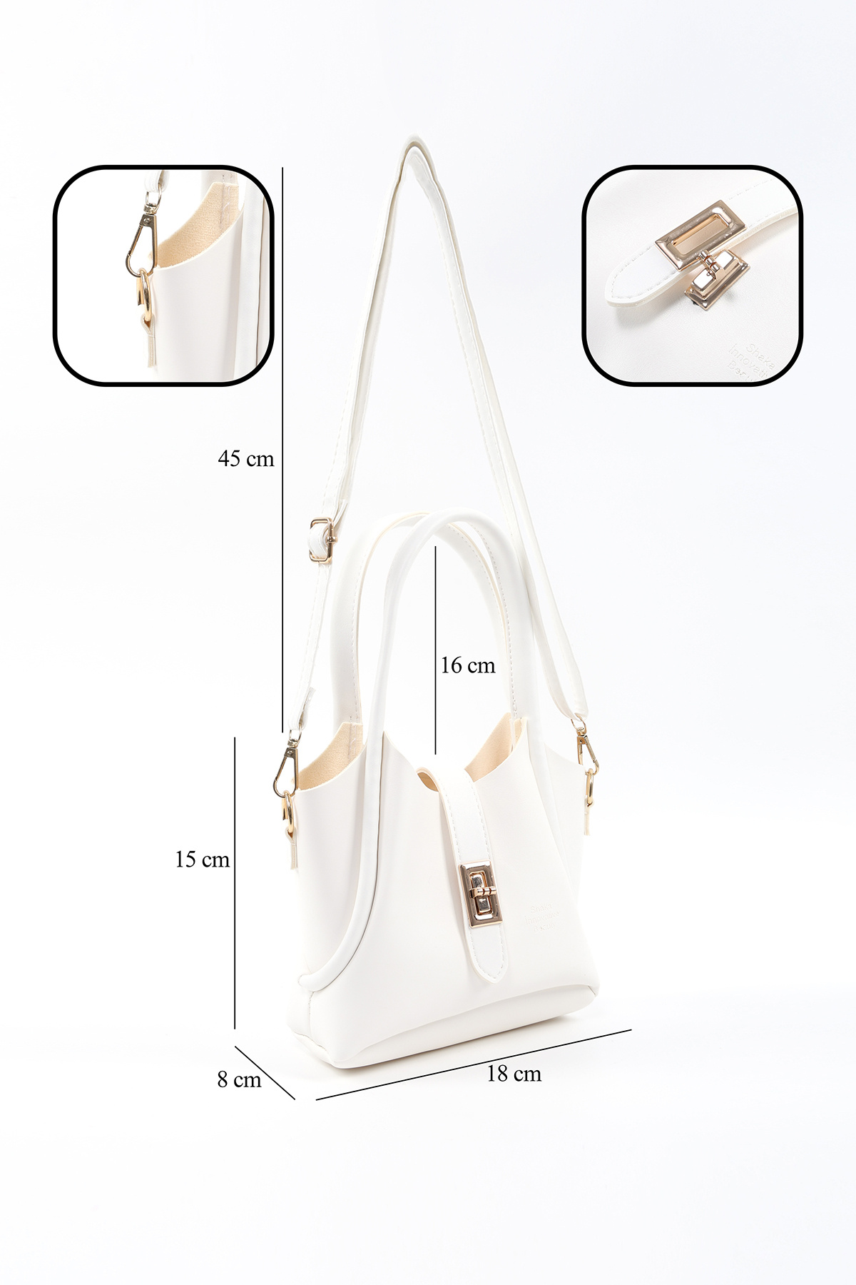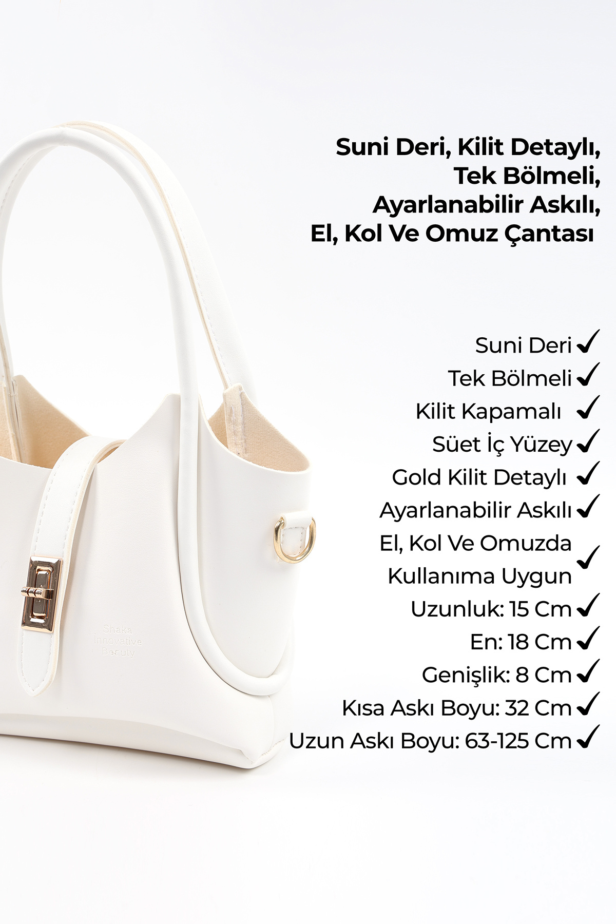 Beyaz Shk187 Suni Deri Kilit Detaylı Ayarlabilir Askılı El,Kol ve Omuz Çantası Beyaz Shk187 Suni Deri Kilit Detaylı Ayarlabilir Askılı El,Kol ve Omuz Çantası S225-00231 تک سایز