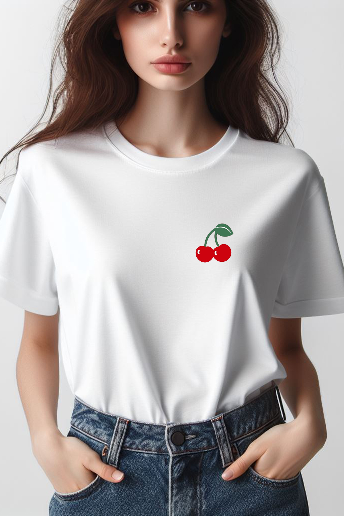 Kadın Beyaz Oversize Tişört - Kiraz Baskılı Kadın Beyaz Oversize Tişört - Kiraz Baskılı AFR156 XL