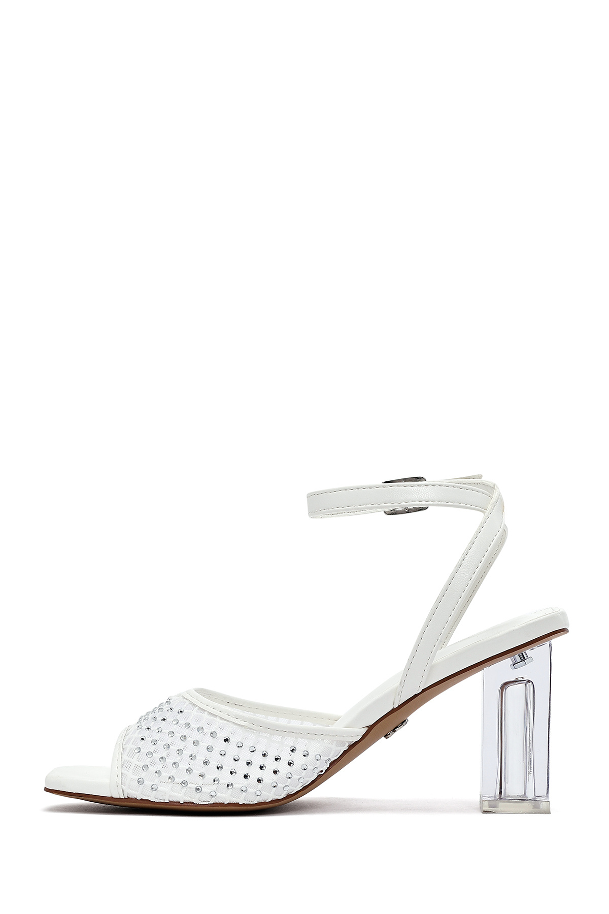 Kadın Beyaz Bilekten Tokalı Taşlı Şeffaf Kalın Topuklu Ayakkabı Sandalet 25SFE481714 Kadın Beyaz Bilekten Tokalı Taşlı Şeffaf Kalın Topuklu Ayakkabı Sandalet 25SFE481714 40