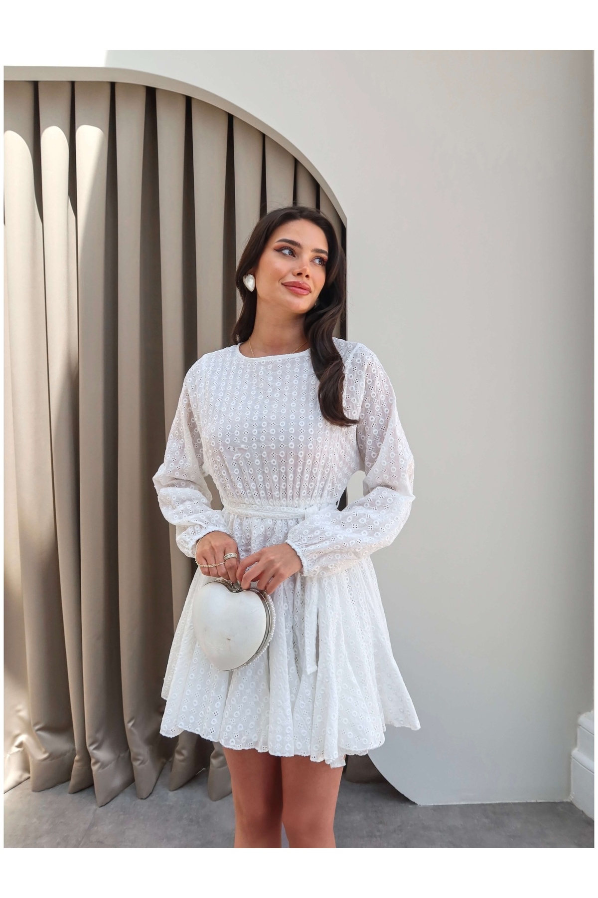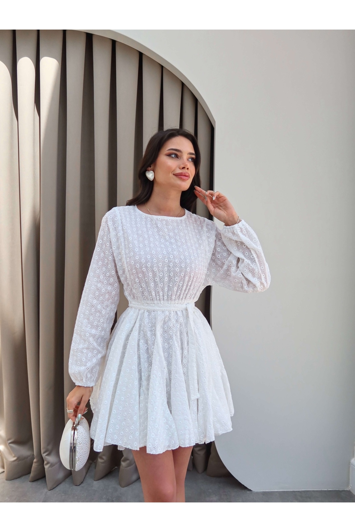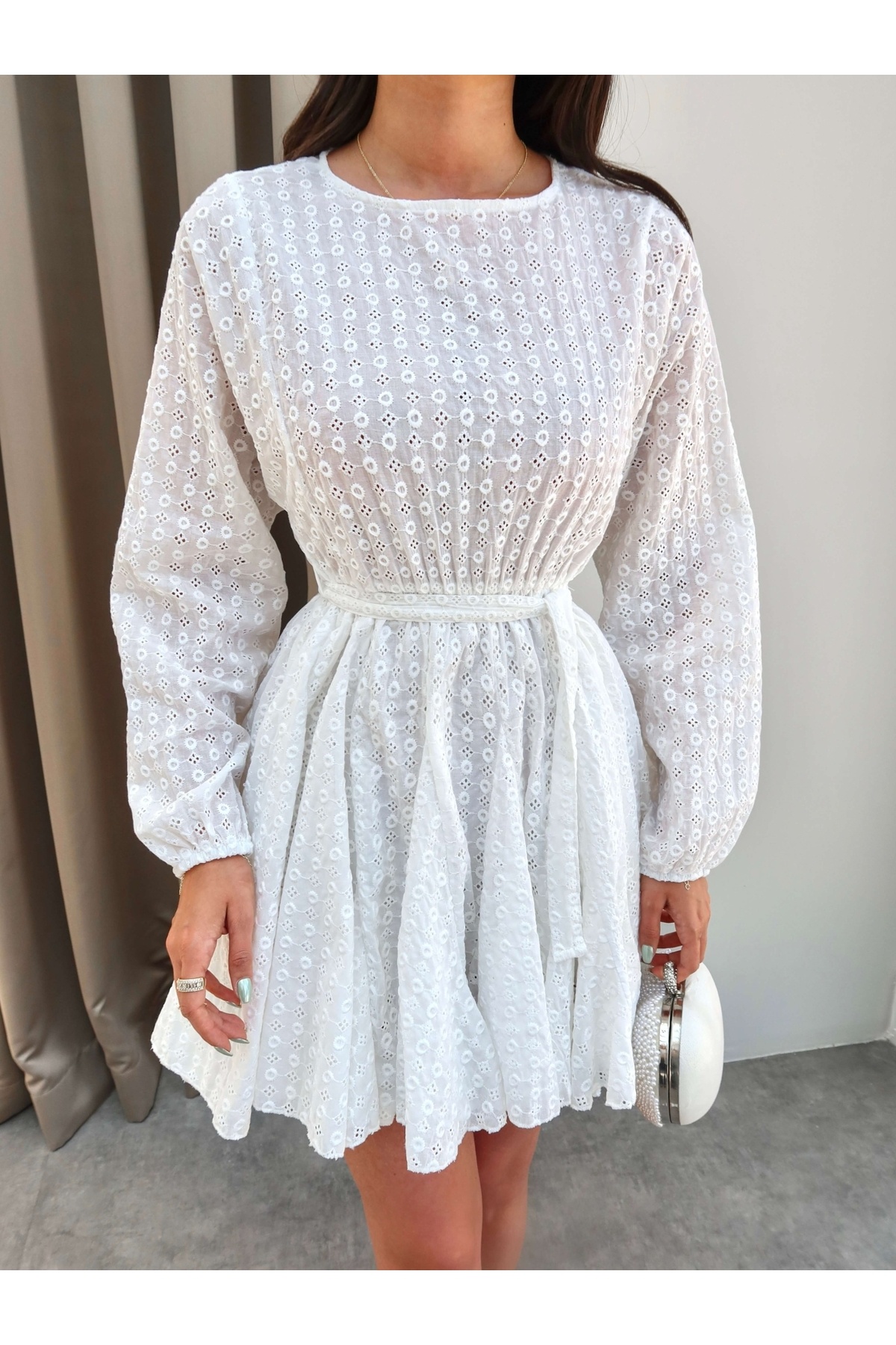 Kuşaklı Fisto Desen Mini Elbise Kuşaklı Fisto Desen Mini Elbise EH-5616 L