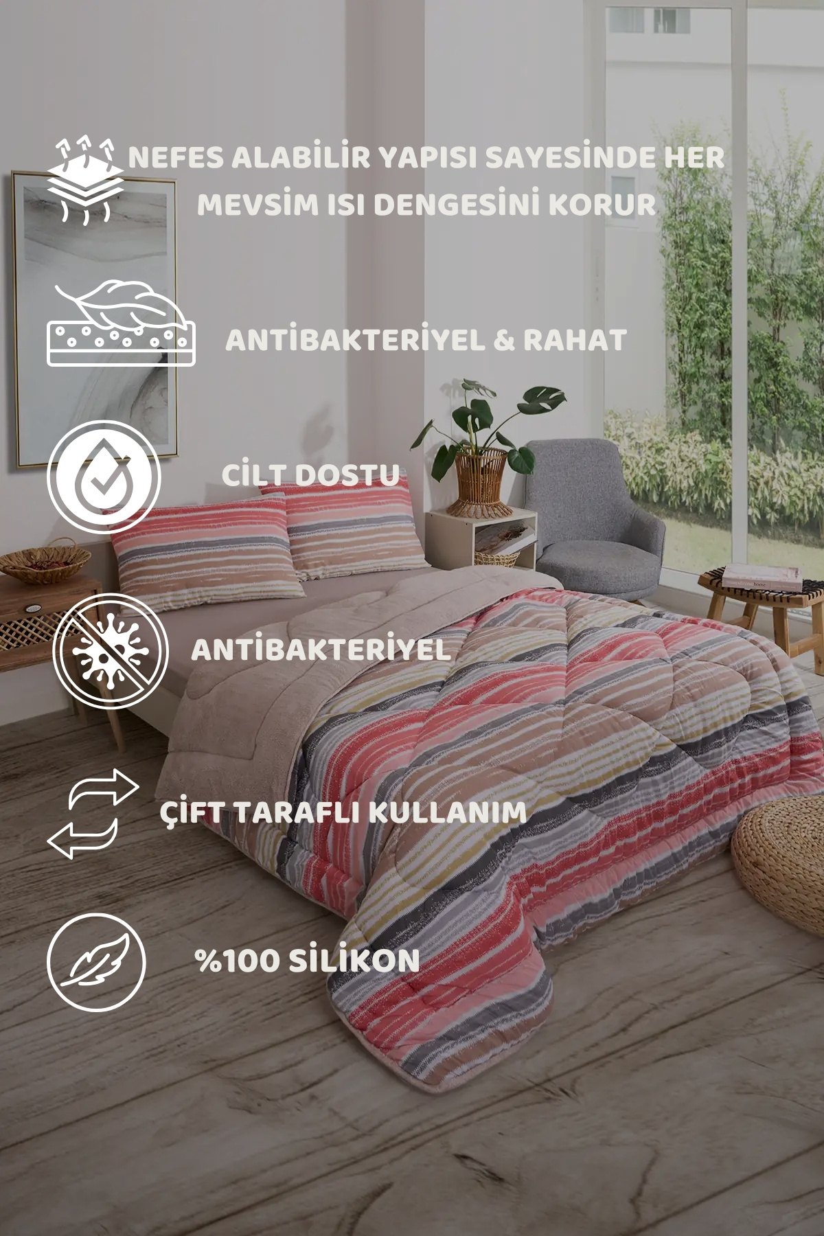 - Yıkama Talimatı : Yorganınızı 30°C'de, hassas yıkama programında ve düşük devirde yıkayınız. Ağartıcı kullanmayınız. sererek kurutunuz