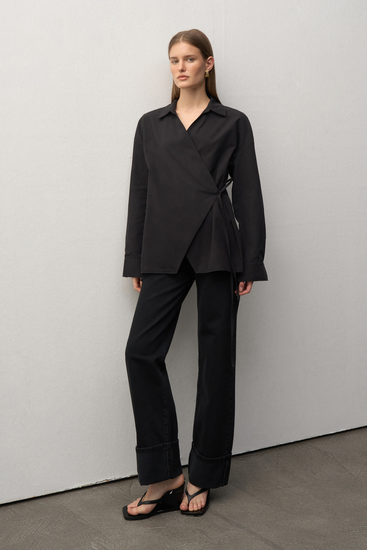 Kadın Siyah Mathilda Katlı Paça Wide Leg Jean Kadın Siyah Mathilda Katlı Paça Wide Leg Jean MTH00400 L