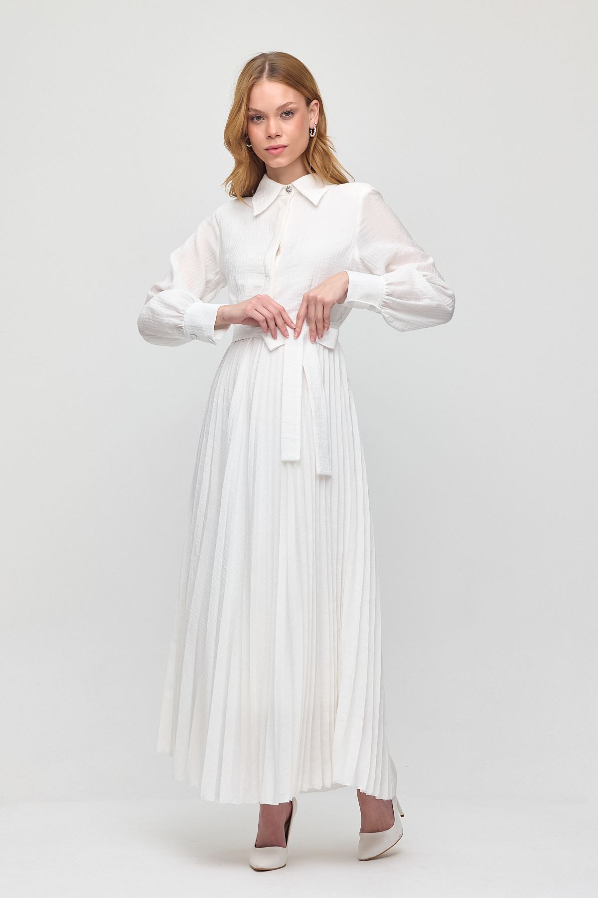 Monche Eteği Pliseli Oversize Pamuklu Elbise Monche Eteği Pliseli Oversize Pamuklu Elbise 4100 2