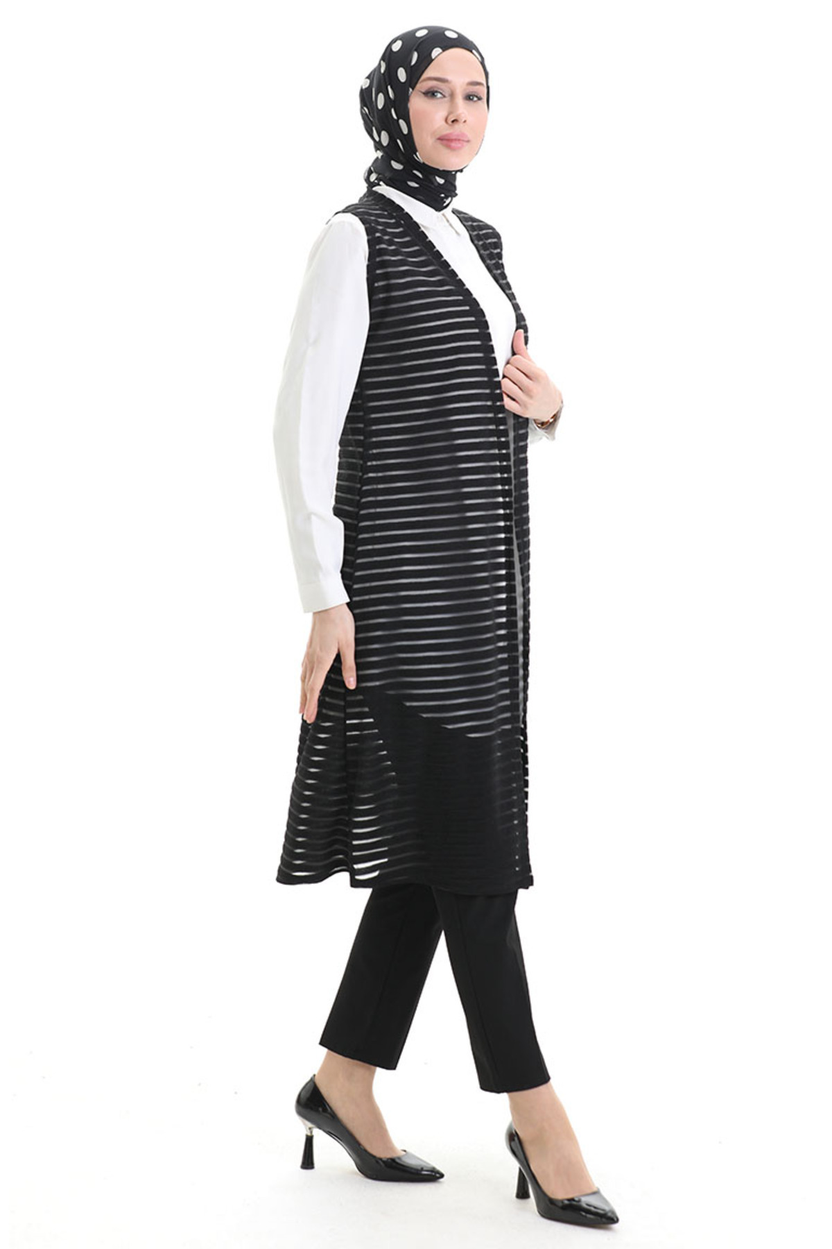 Dantelli Uzun Dökümlü Yelek 8745-01 Siyah Dantelli Uzun Dökümlü Yelek 8745-01 Siyah RSPR8745-01 50-52