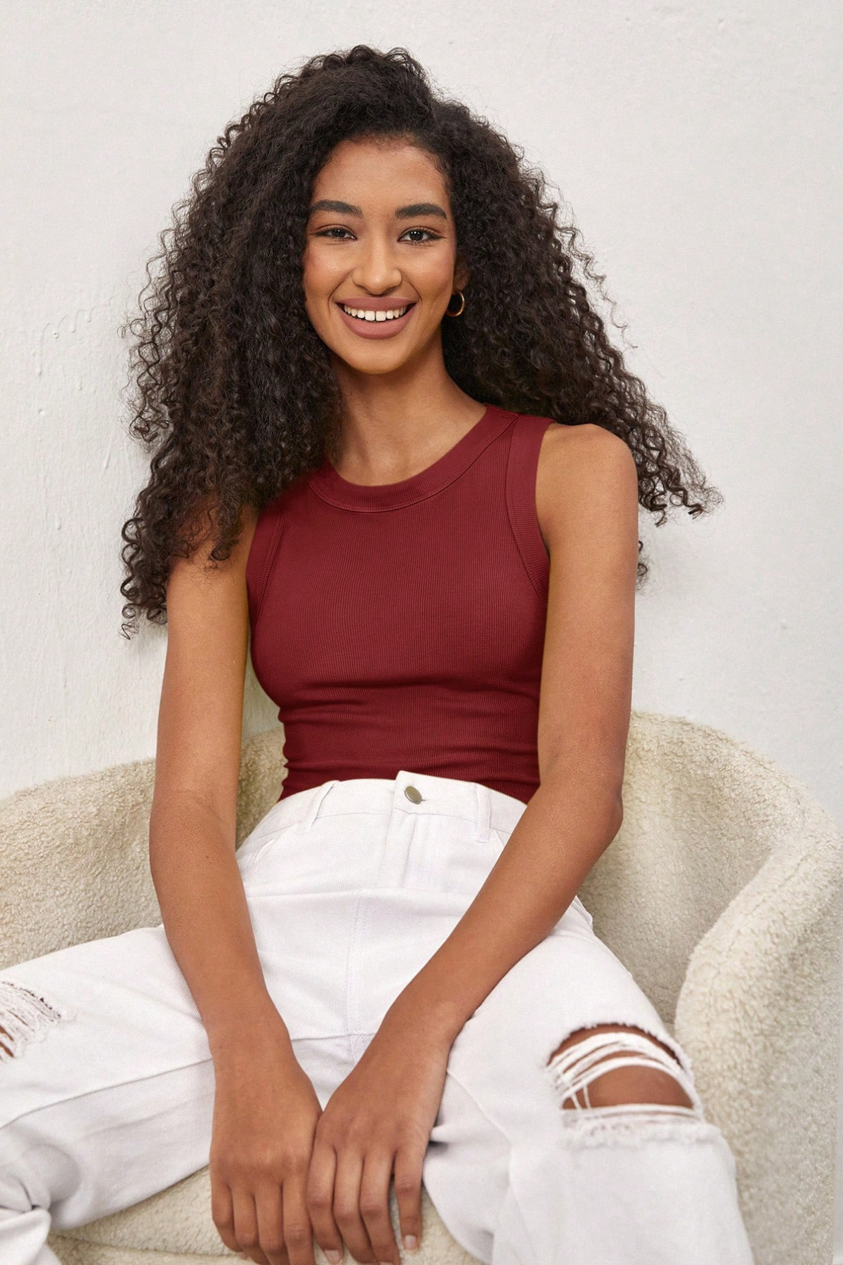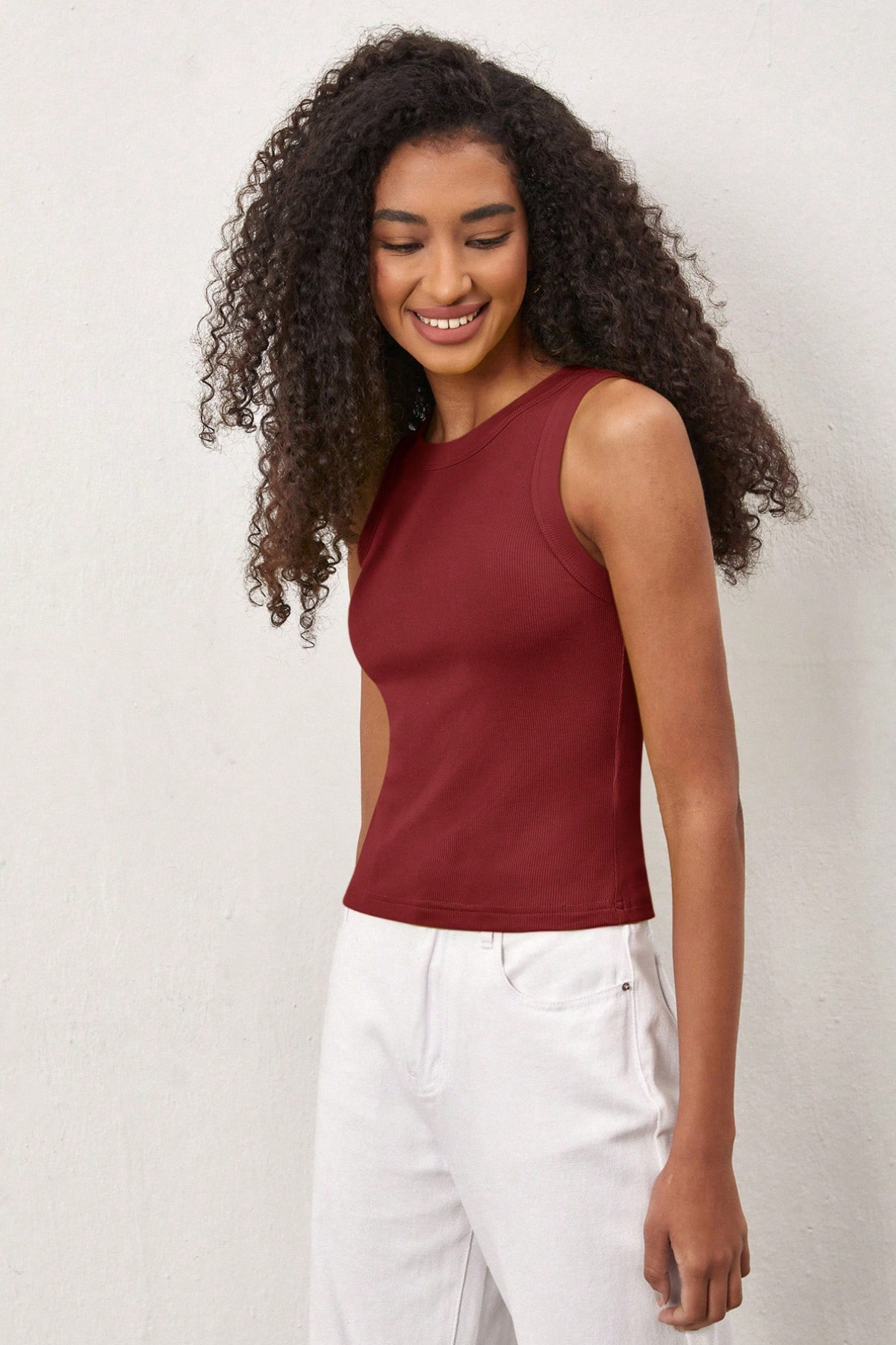 Kadın Bordo Kaşkorse Kumaş Geniş biyeli Basıc Crop Top Bluz Kadın Bordo Kaşkorse Kumaş Geniş biyeli Basıc Crop Top Bluz LNZ200 XL
