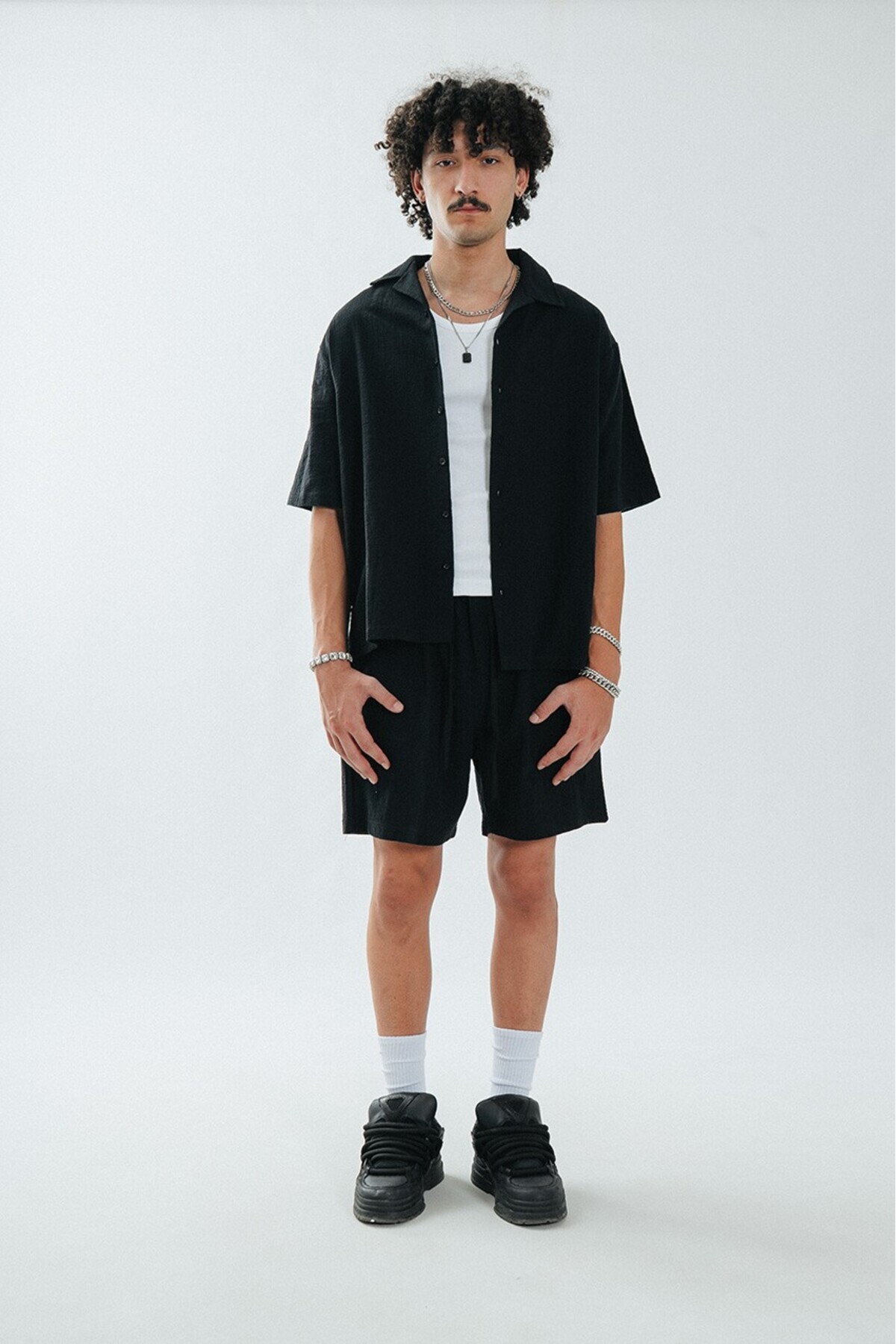 Haki Renk Desenli Viskon Erkek Gömlek - Şort Alt Üst Takım Haki Renk Desenli Viskon Erkek Gömlek - Şort Alt Üst Takım mfz40 2XL
