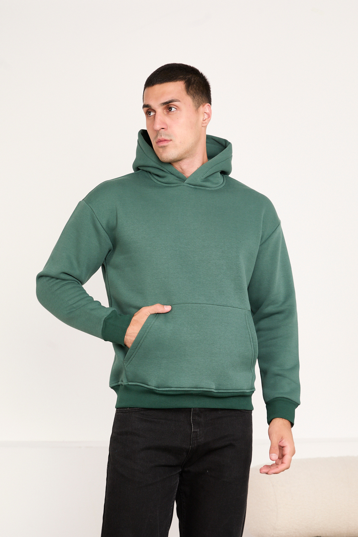 Erkek Oversize Basic Kapüşonlu Sweatshirt OIL GREEN Erkek Oversize Basic Kapüşonlu Sweatshirt OIL GREEN M3368 2XL