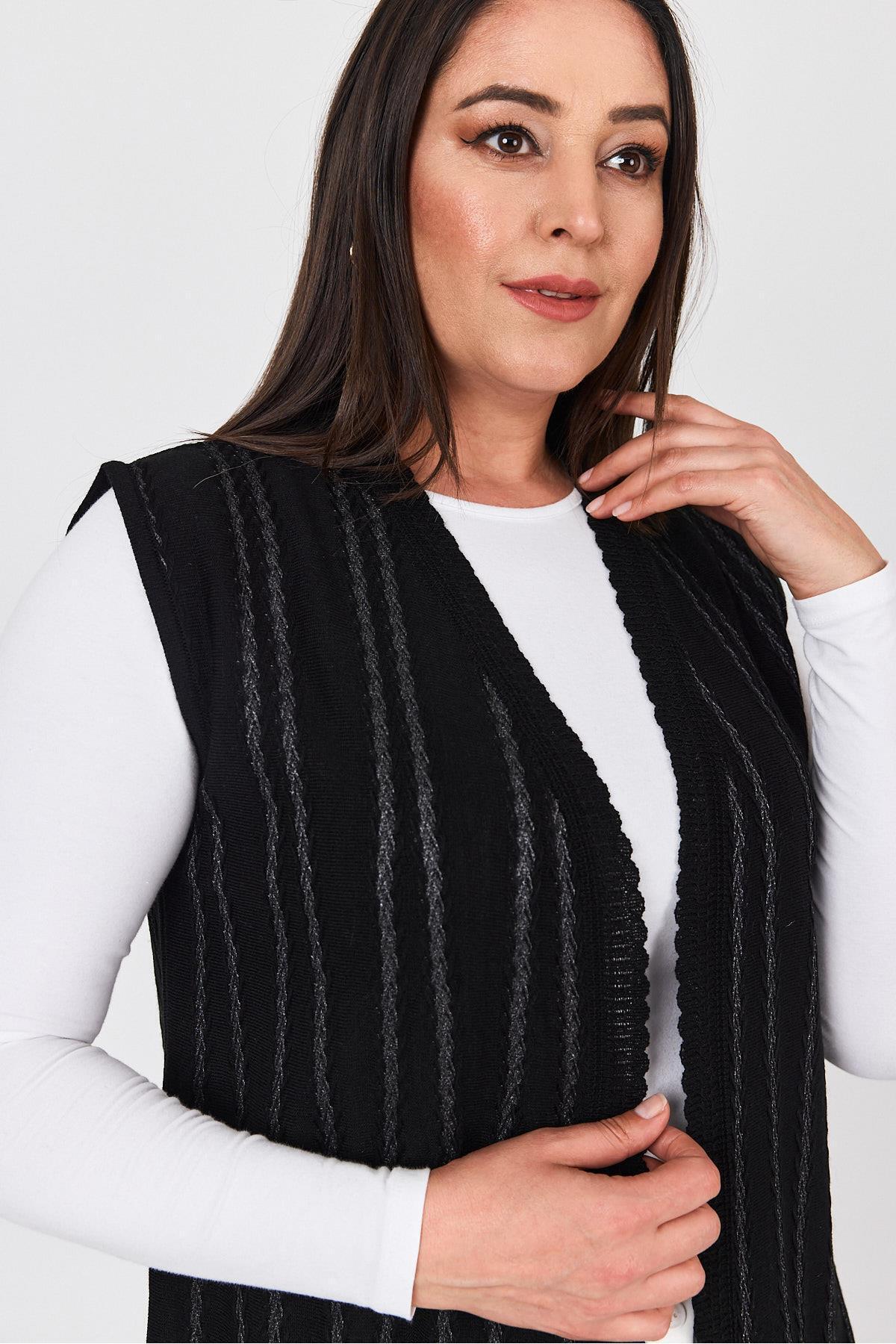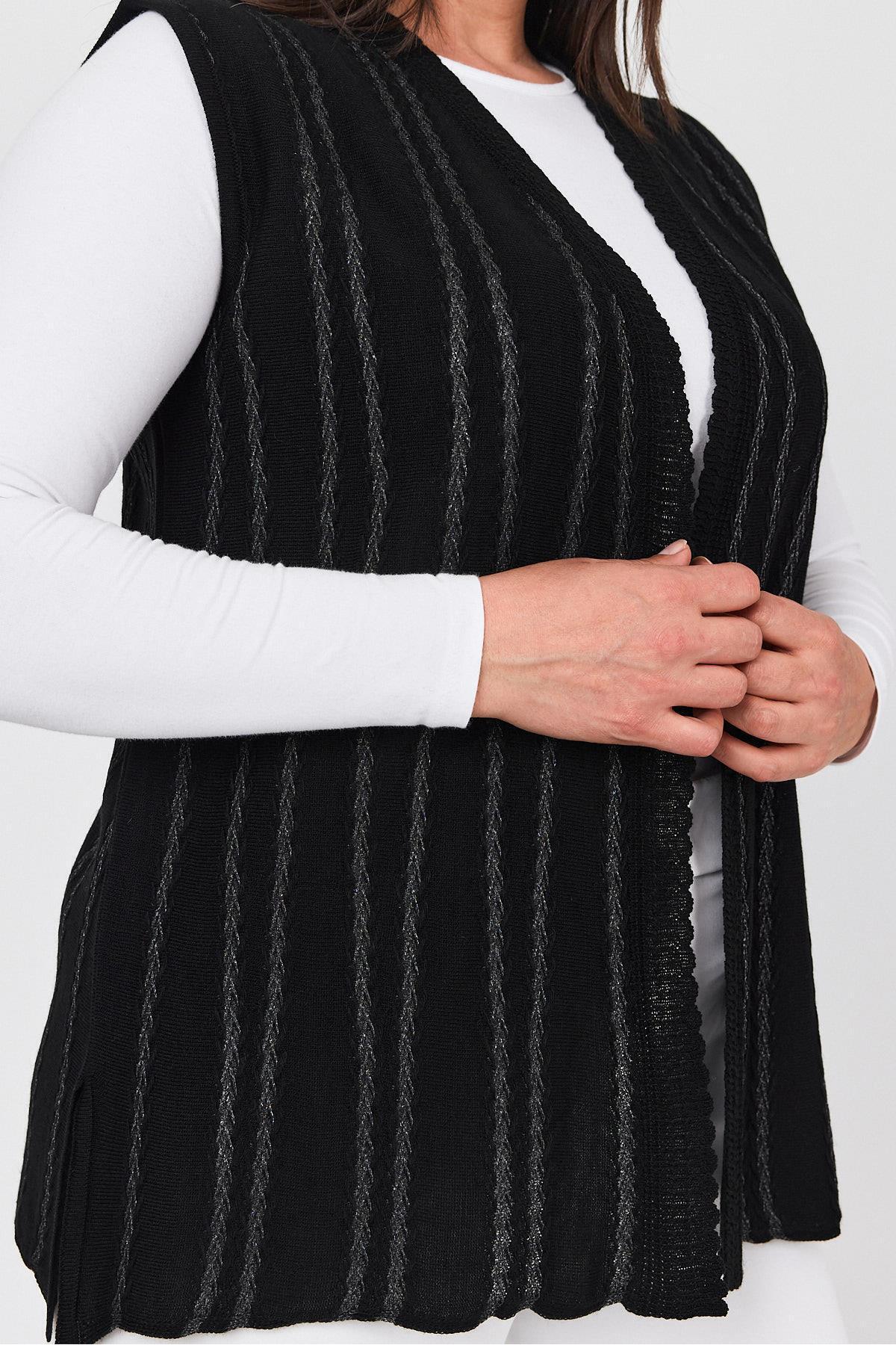 Kadın Siyah Simli Çizgili V Yaka Mevsimlik Anne Yazlık Yelek Kadın Siyah Simli Çizgili V Yaka Mevsimlik Anne Yazlık Yelek 932326989 2XL