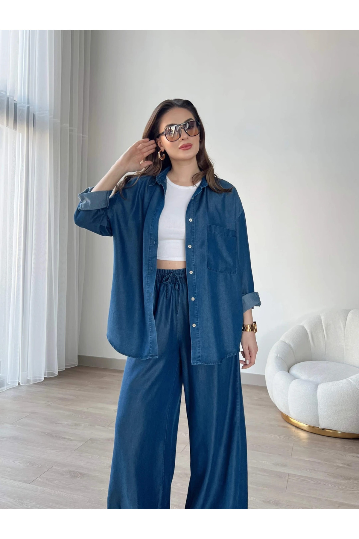 KADIN İNCE DENİM KUMAŞ GÖMLEK PANTOLON TAKIM 4S528 KADIN İNCE DENİM KUMAŞ GÖMLEK PANTOLON TAKIM 4S528 L