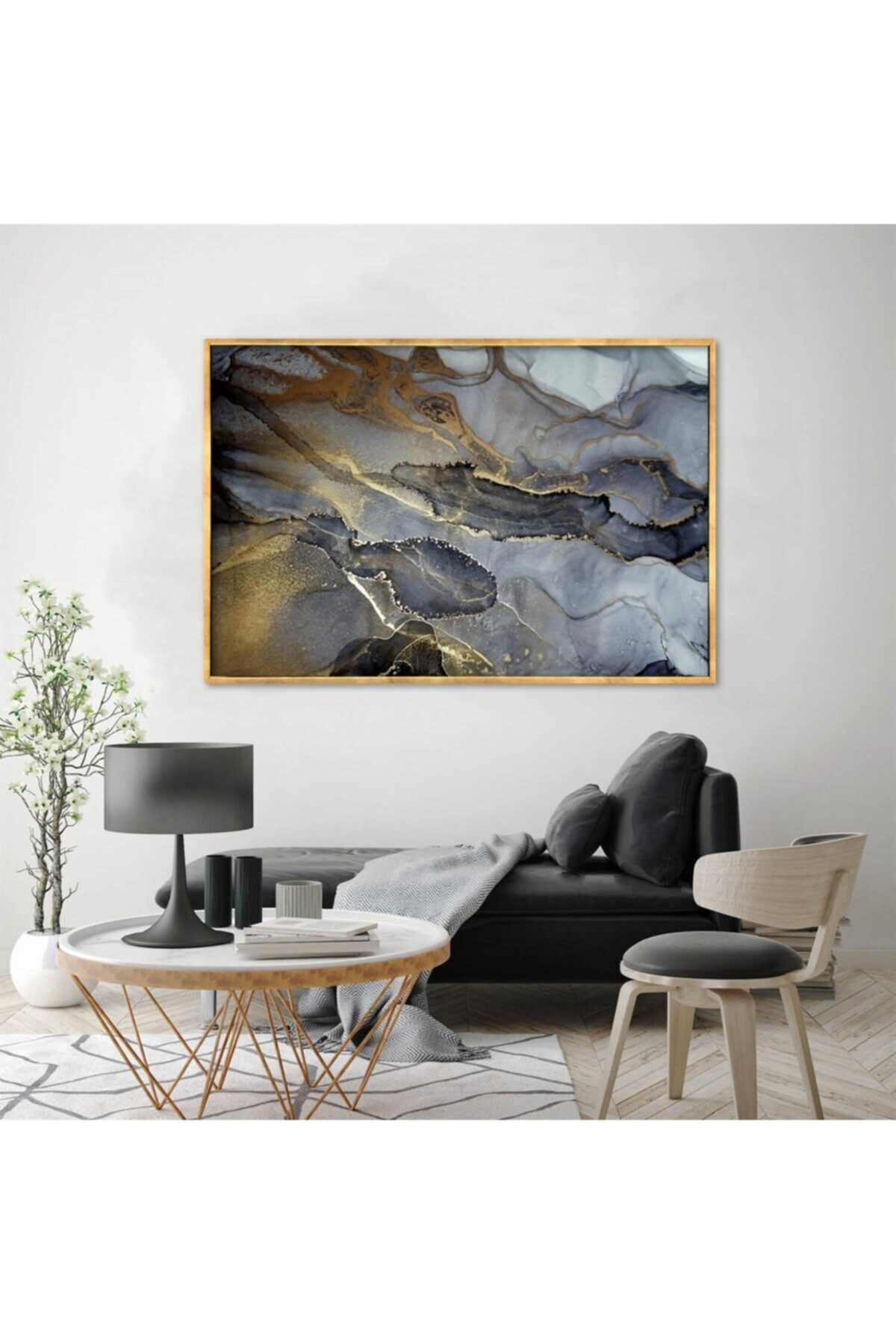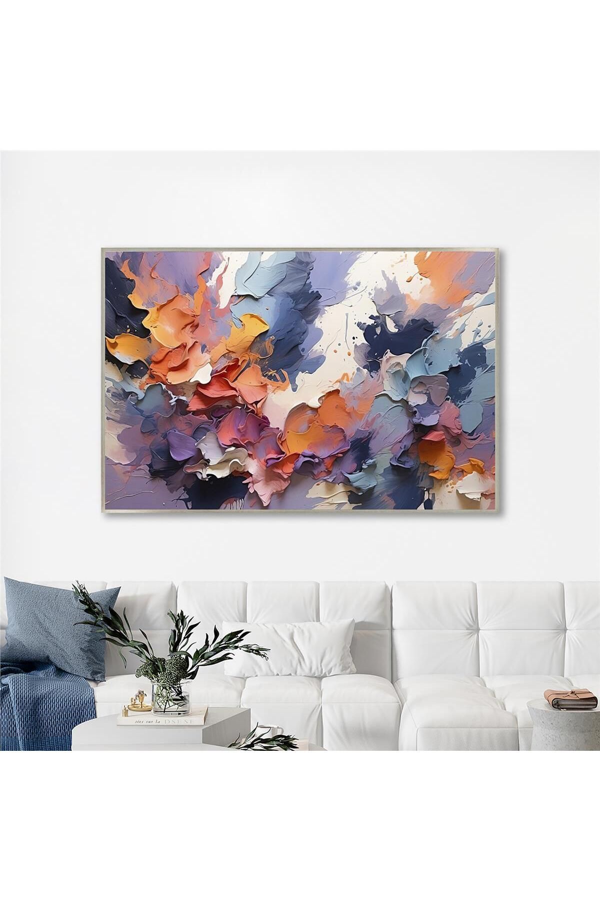 مشخصات فنی SOYUT MOR VE ALTIN ÇİZGİLER YAĞLI BOYA DOKULU TABLO