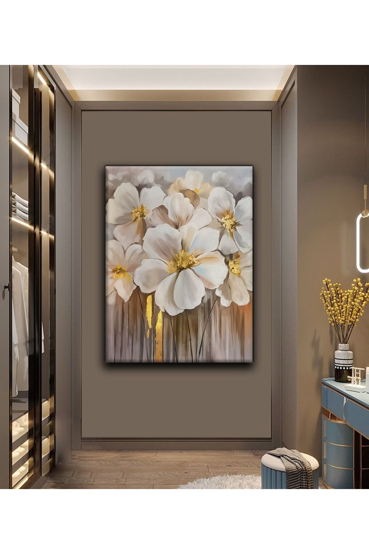 BEYAZ VE ALTIN YAPRAKLI ÇİÇEKLER DİKEY YOĞUN YAĞLI BOYA DOKULU TABLO BEYAZ VE ALTIN YAPRAKLI ÇİÇEKLER DİKEY YOĞUN YAĞLI BOYA DOKULU TABLO ATELIERTD8068 60 x 180