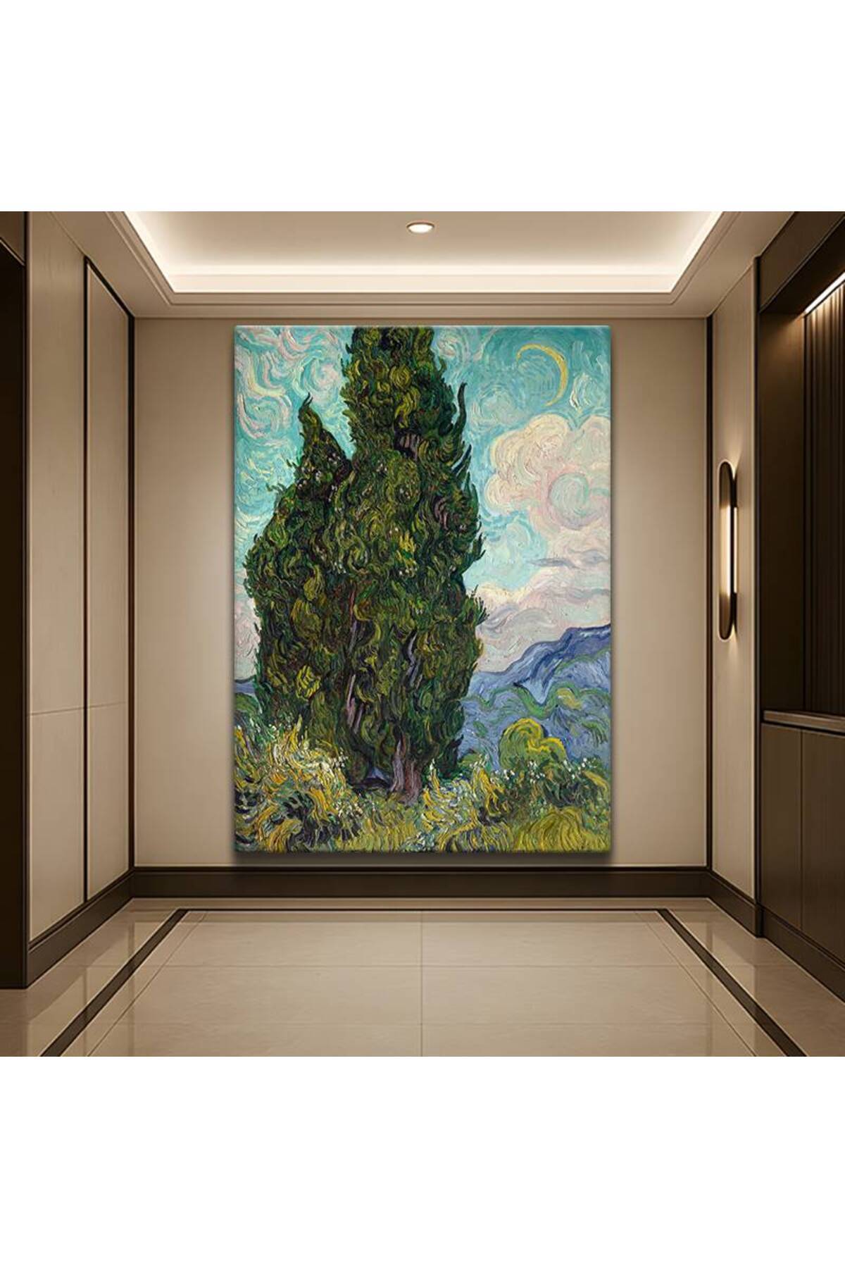 BULUTLARIN ARASINDAKİ ÇAYIR DİKEY YAĞLI BOYA DOKULU TABLO BULUTLARIN ARASINDAKİ ÇAYIR DİKEY YAĞLI BOYA DOKULU TABLO ATELIERTD8447 60 x 180
