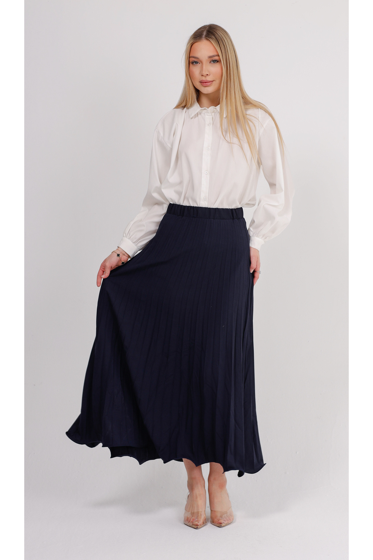 Saten Lacivert Piliseli Uzun Etek Saten Lacivert Piliseli Uzun Etek 42