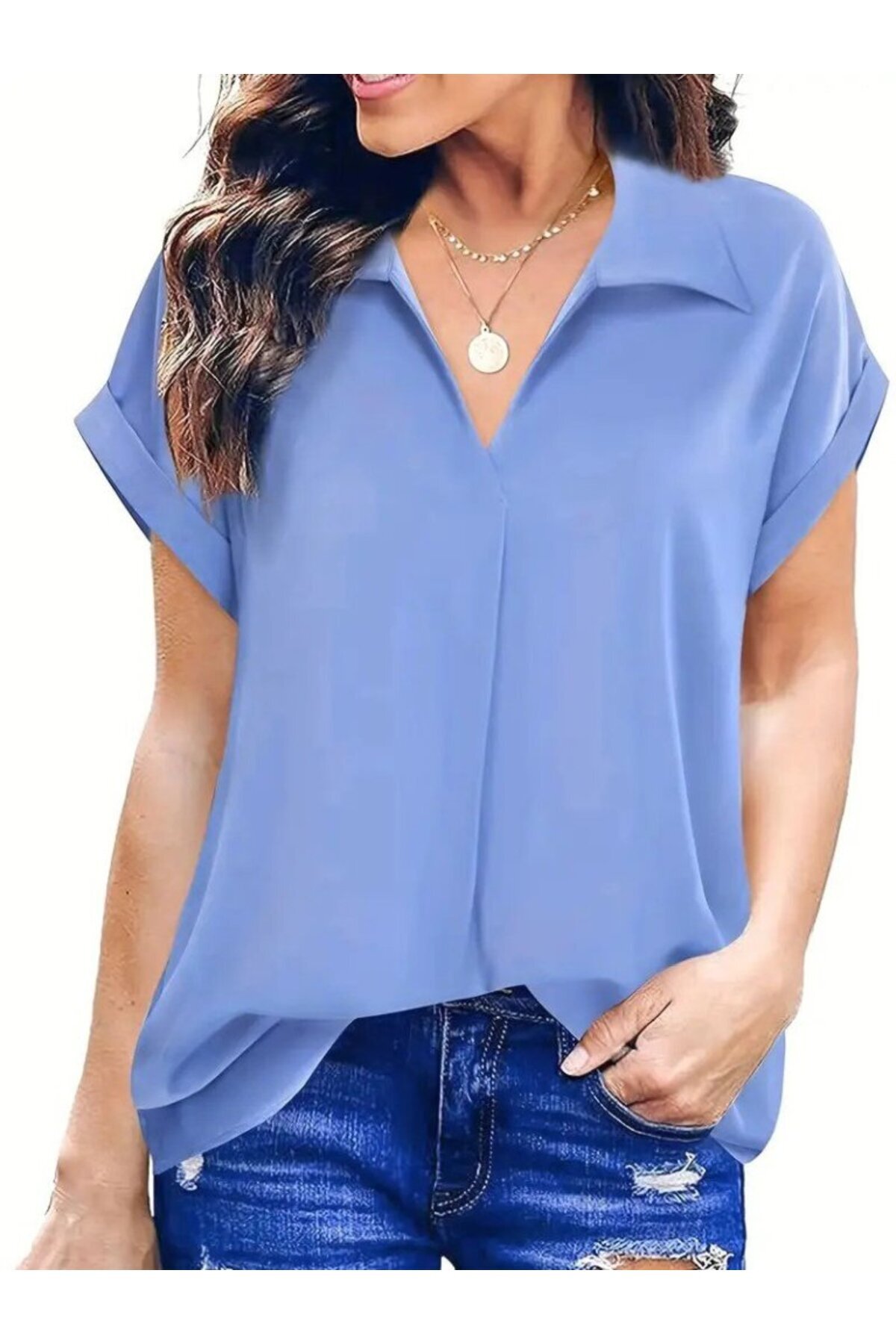 Kadın Kısa Kollu Yakalı Uzun Sandy Bluz Kadın Kısa Kollu Yakalı Uzun Sandy Bluz SNN-680c853745921 2XL-3XL